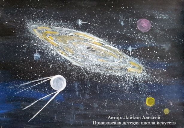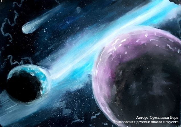 Юные художники изобразили невероятный фантастический космос, представили зрителю красоту звездного неба, полет к далеким мирам, жизнь на других планетах.