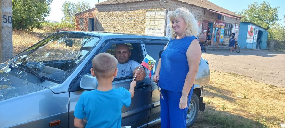 Сегодня работники Богдановского и Степановского Второго сельских домов культуры провели патриотическую акцию "Российский триколор- в каждый дом" и вышли на улицы села, чтобы поздравить жителей и гостей с праздником, рассказать об истории одного из главных символов нашей страны и вручить флажки с российским триколором.