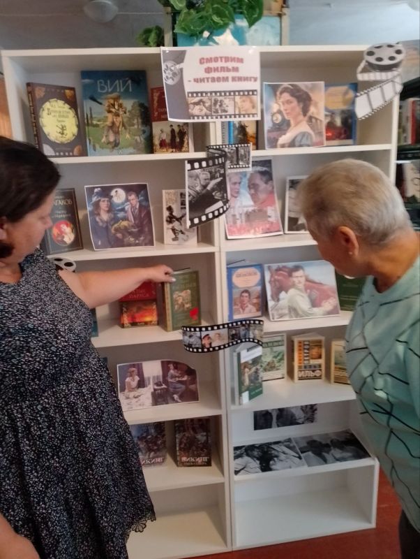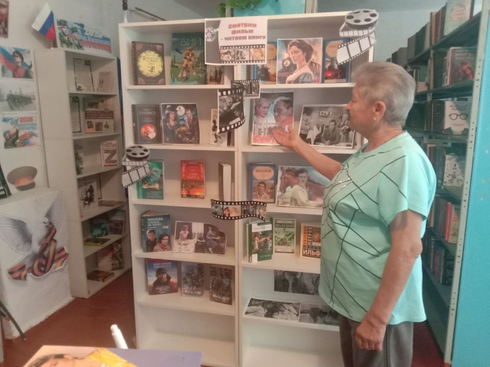 В Гирсовской библиотеке оформлена книжная выставка "На экране - фильм, а у нас книги", посвященная Дню российского кино
