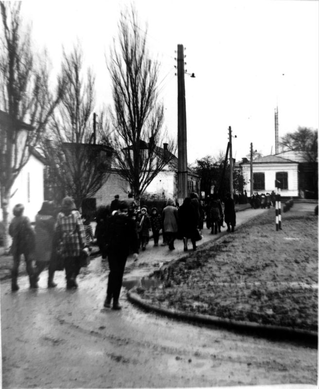 Фотоконкурс "Любимый поселок в объективе". Ретро-фото из семейного альбома Евдокимова Дмитрия Викторовича (Акимовская средняя школа - 1980, 1964 г., Детсад "Солнышко" - 1978 г., ул.Ленина - 1980 г., памятник Полтавчан - 1980 г.)