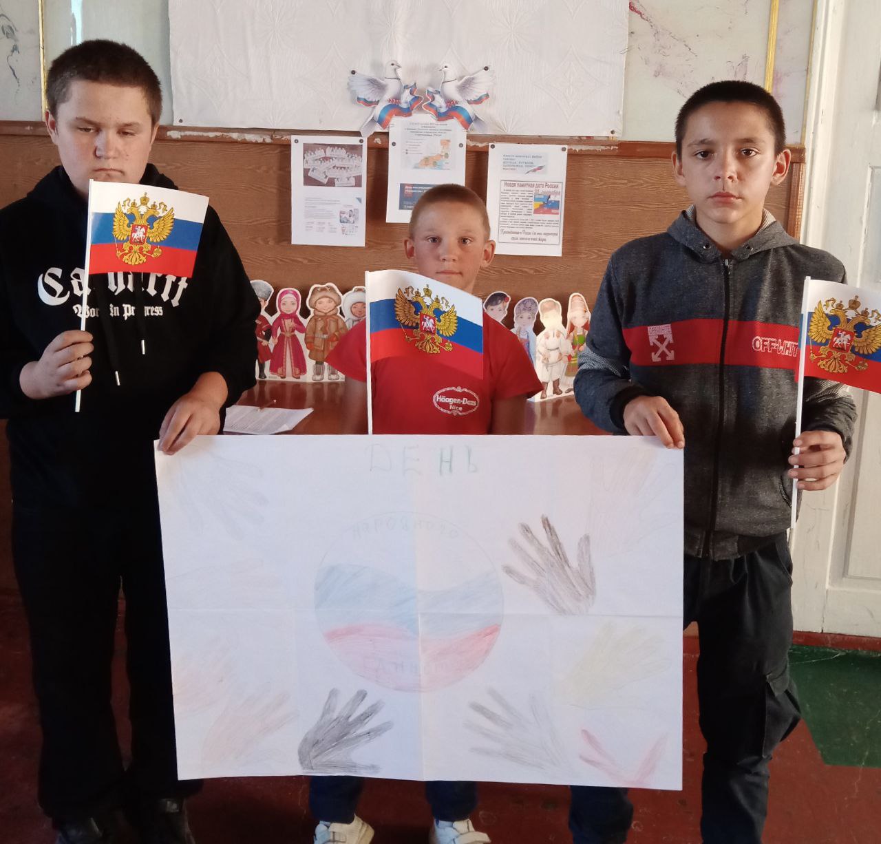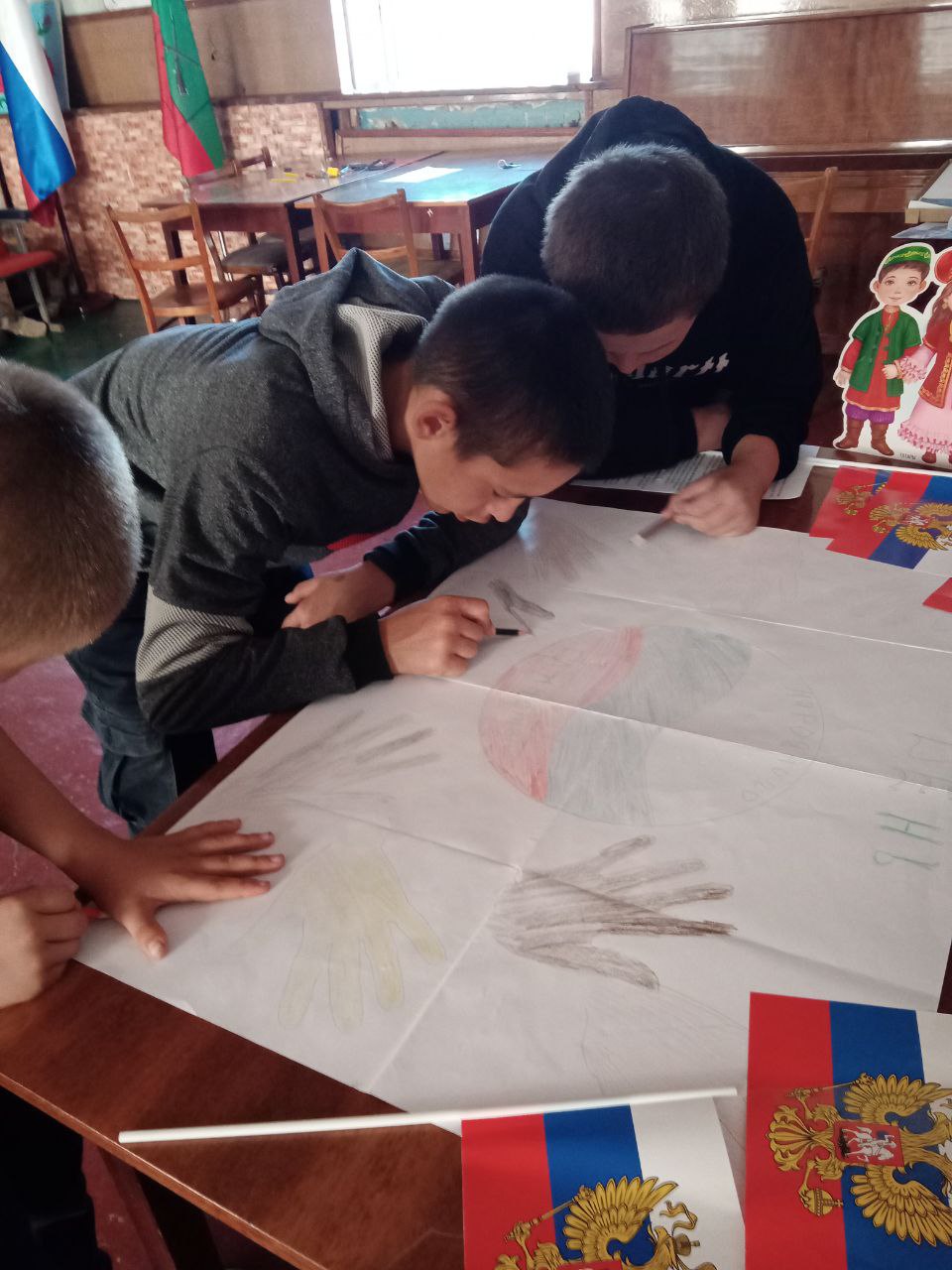 Дети рисовали и обводили свои маленькие ладони, чтобы быть ещё ближе к этому празднику.
