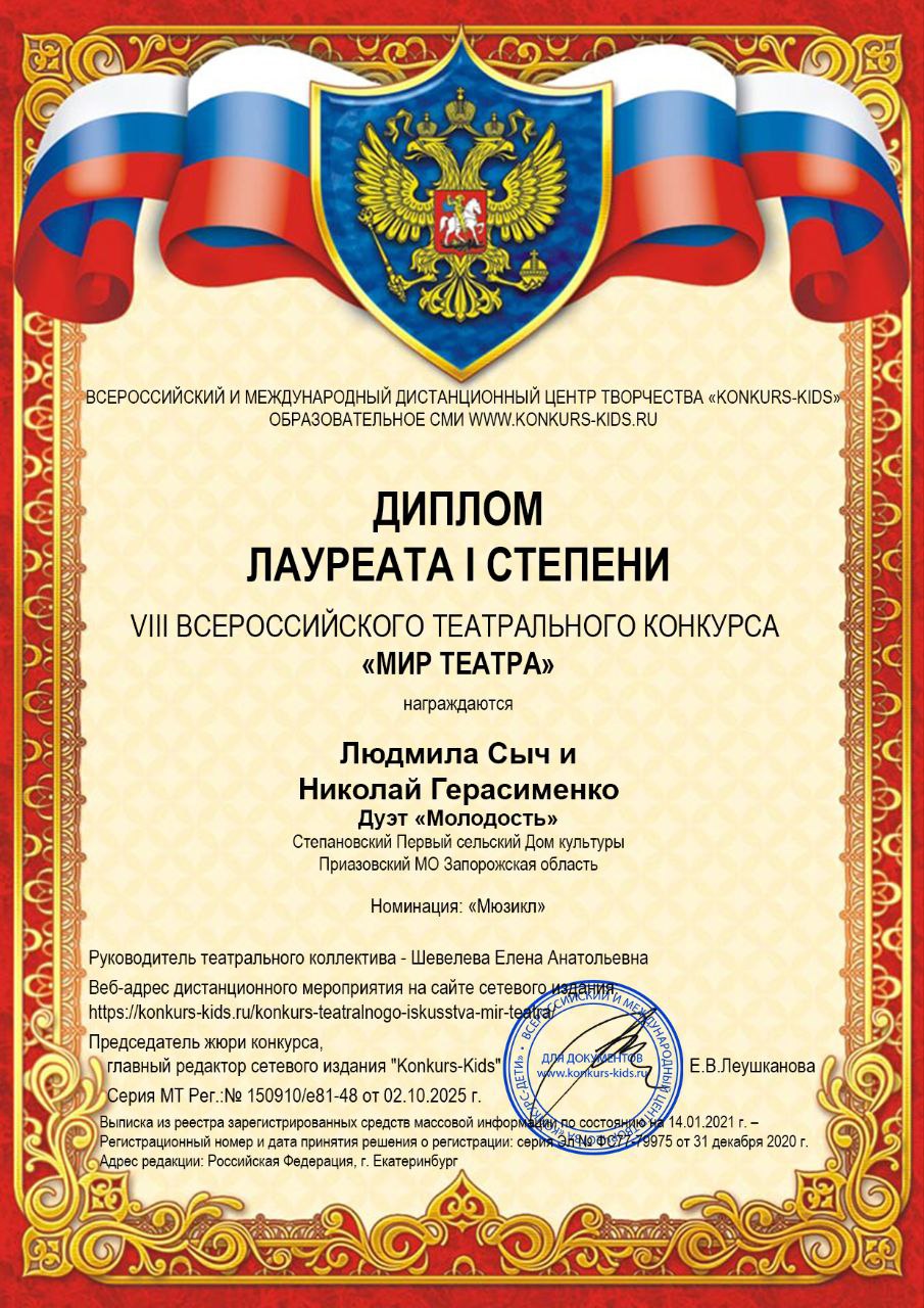 Поздравляем наших участников художественной самодеятельности с первыми и достойными достижениями! Участие в театральном конкурсе "Мир театра" принесло нам дипломы лауреатов Первой степени