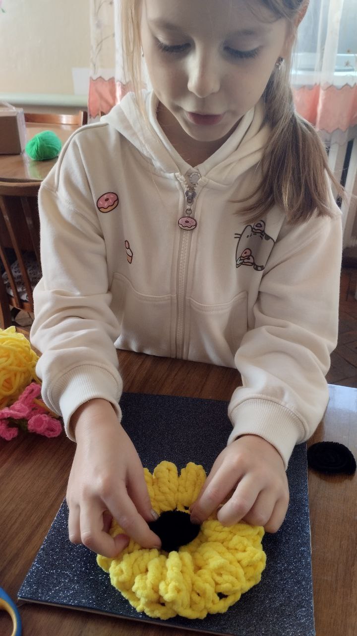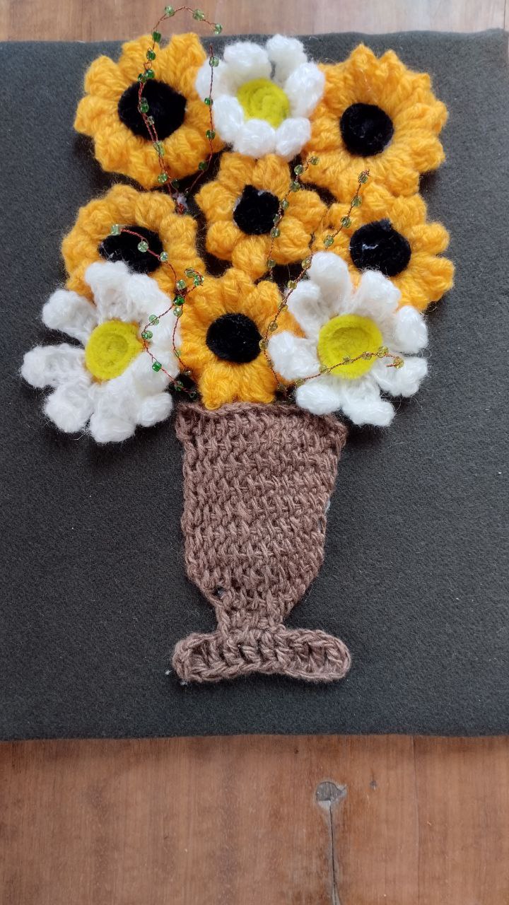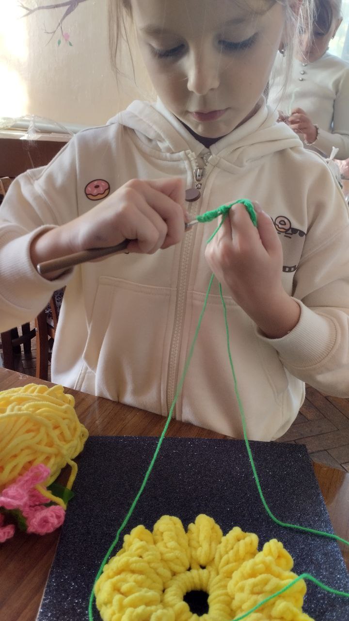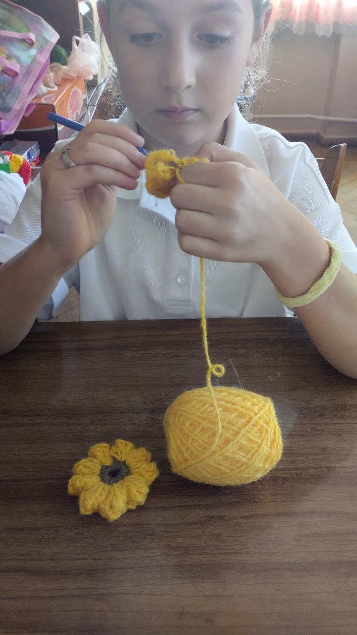 В Приазовском ДК на кружке "Вязание крючком" воспитанницы создавали из ниток разнообразные цветы, а затем оформили из них картины, которые теперь украшают помещение кружка.