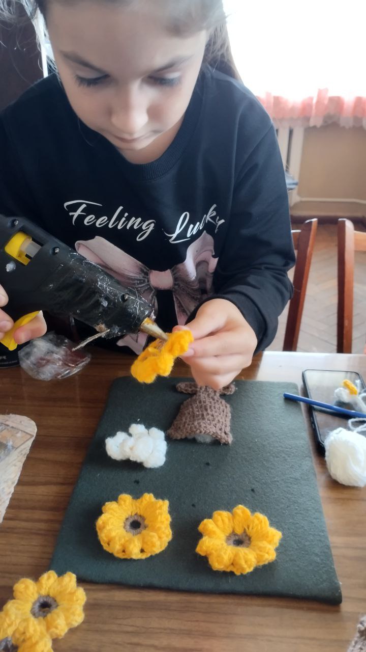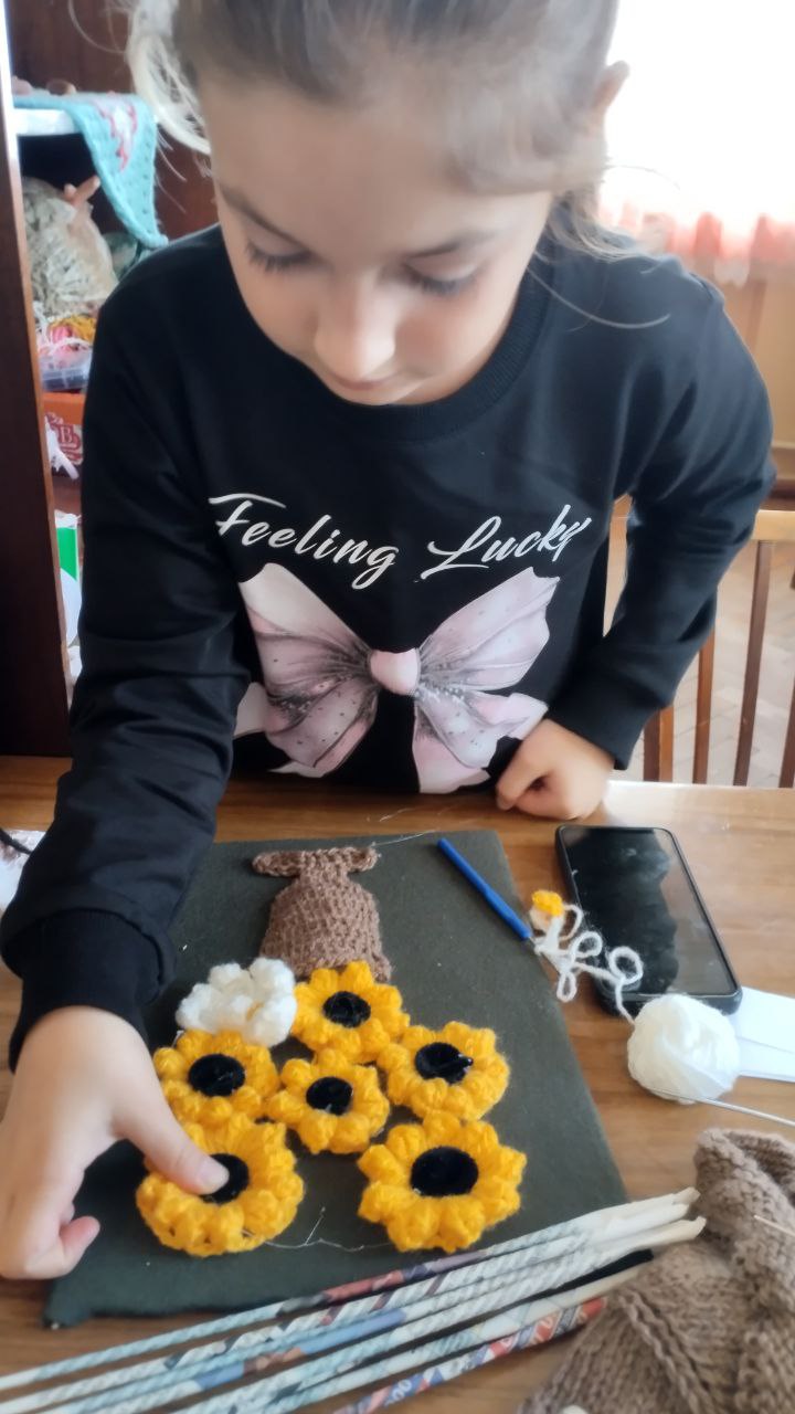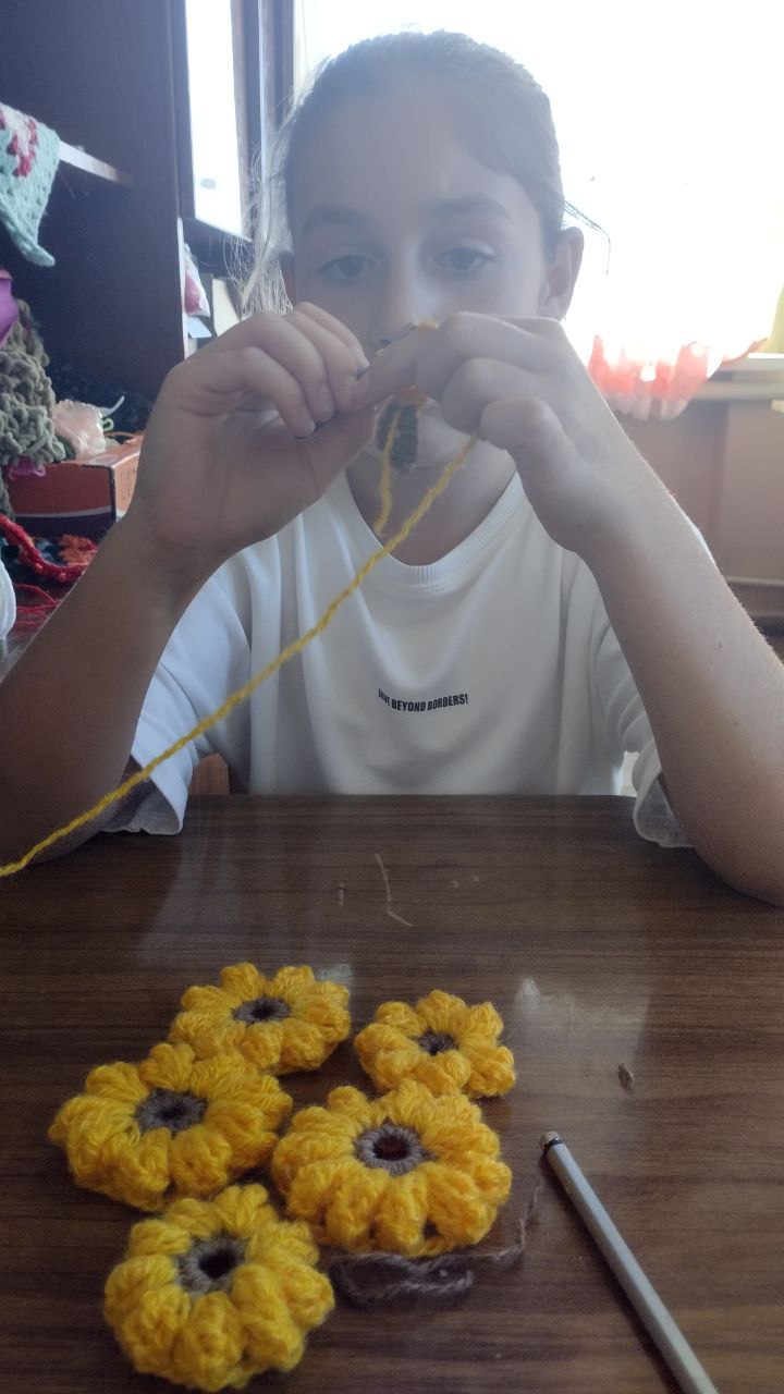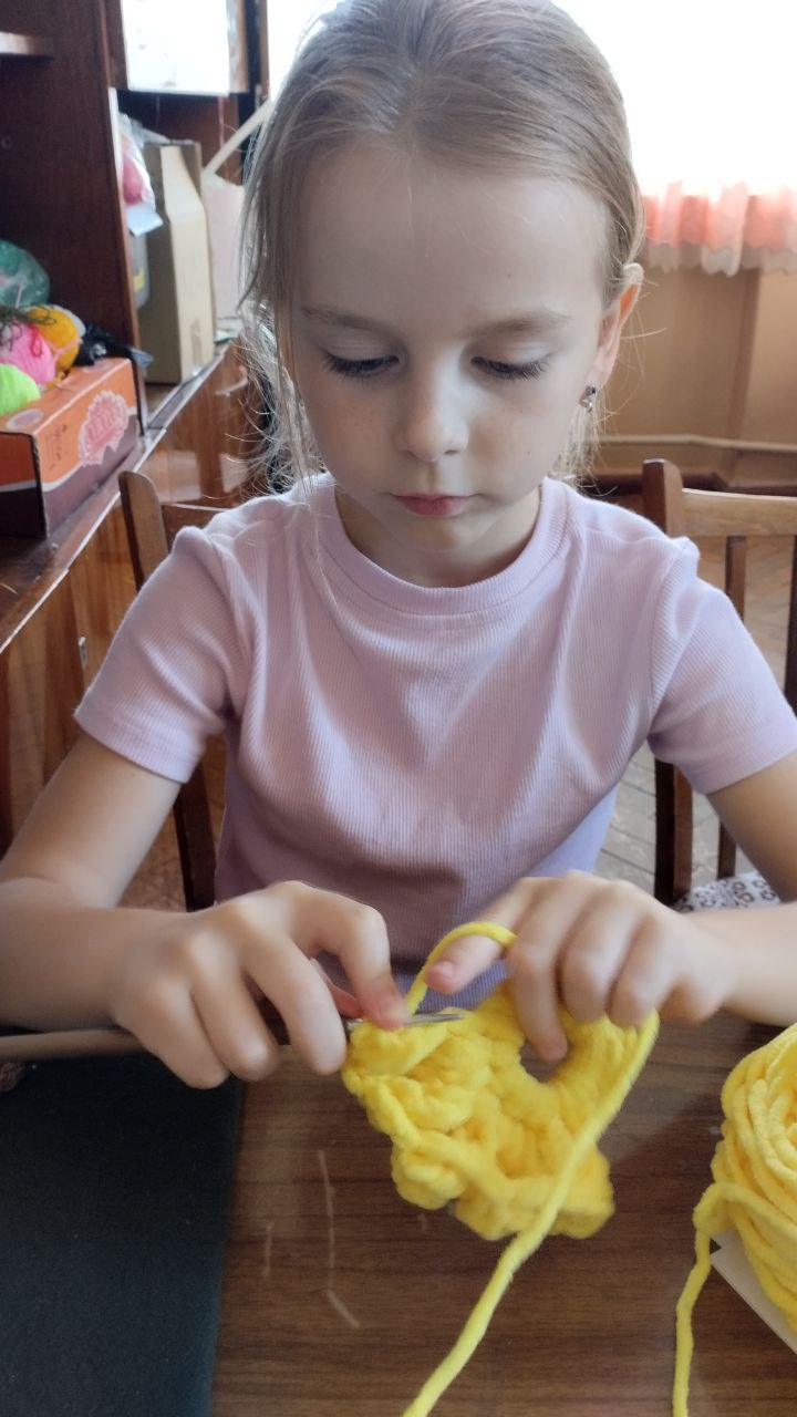 В Приазовском ДК на кружке "Вязание крючком" воспитанницы создавали из ниток разнообразные цветы, а затем оформили из них картины, которые теперь украшают помещение кружка.