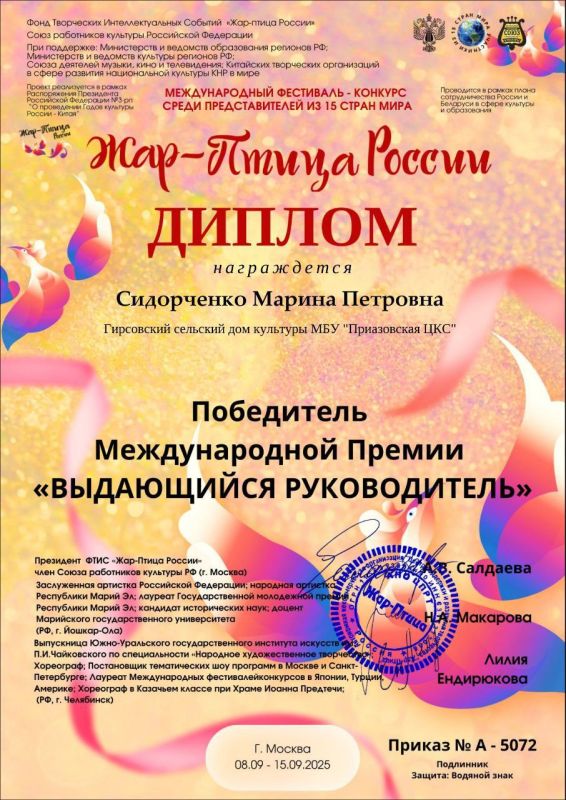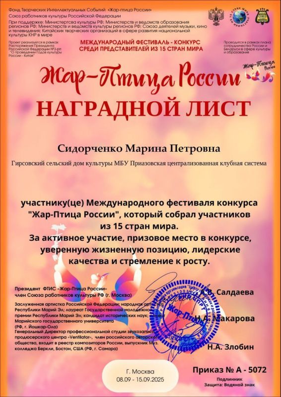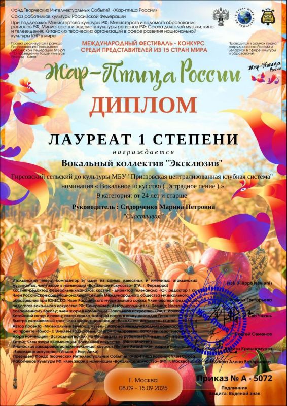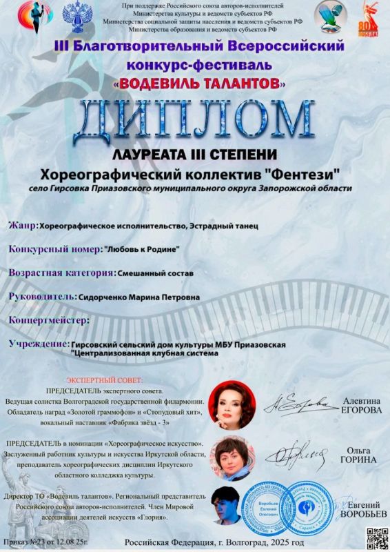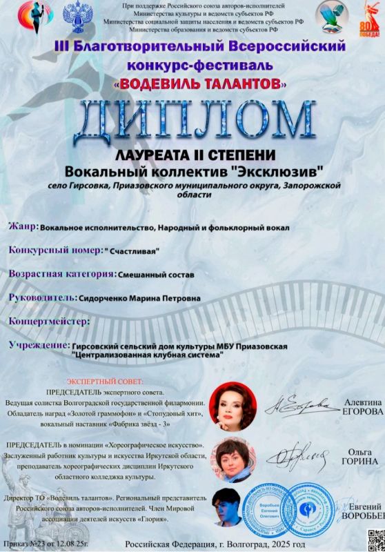 Мы рады сообщить, что наши коллективы принимали участие в двух престижных международных конкурсах"Водевиль талантов" и "Жар - Птица России", которые признаны на самом высоком уровне. Благодаря нашим усилиям и таланту, мы смогли достичь значительных результатов и завоевать призовые места.