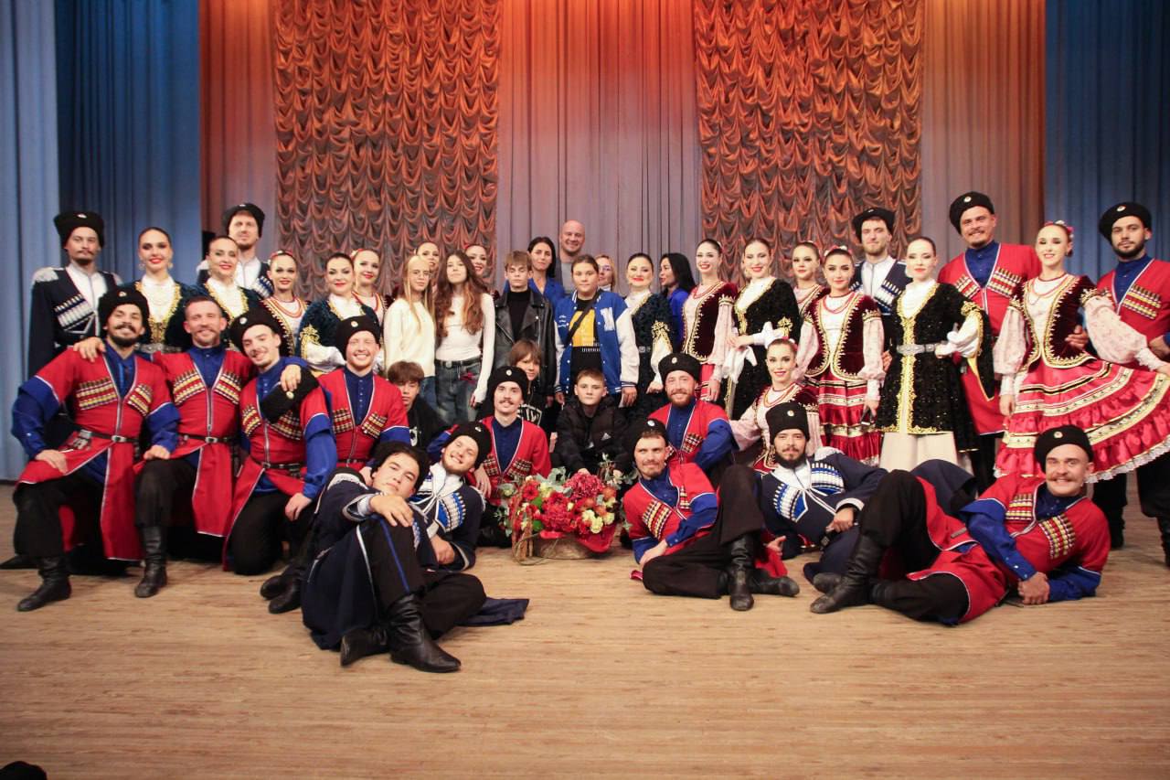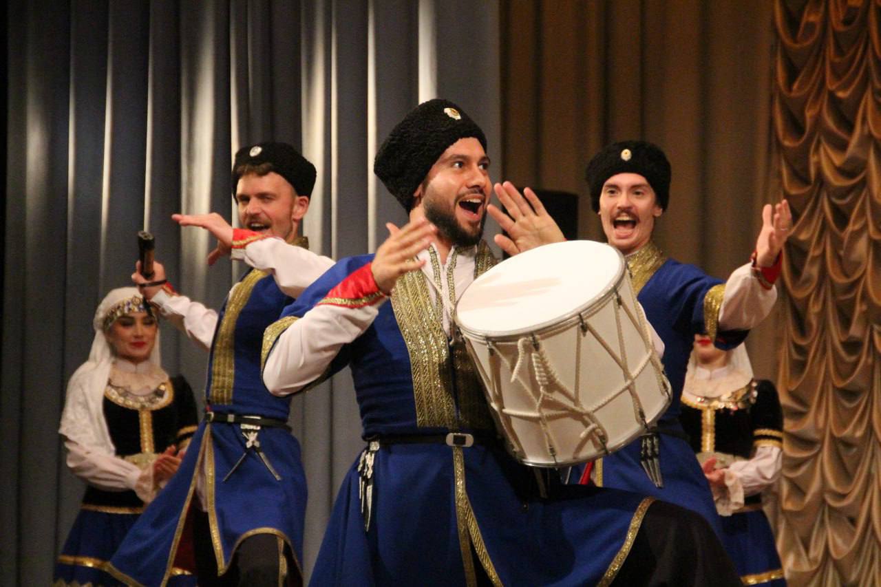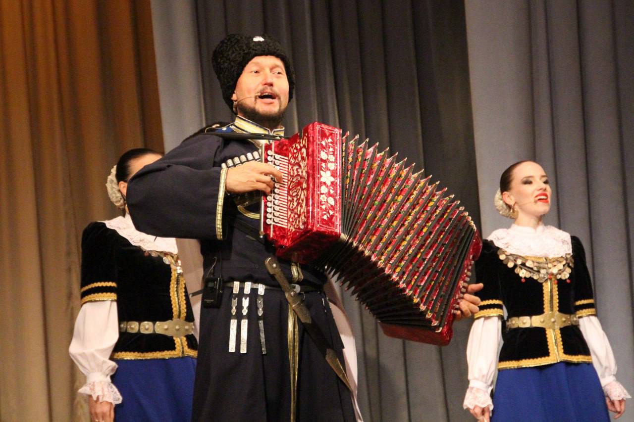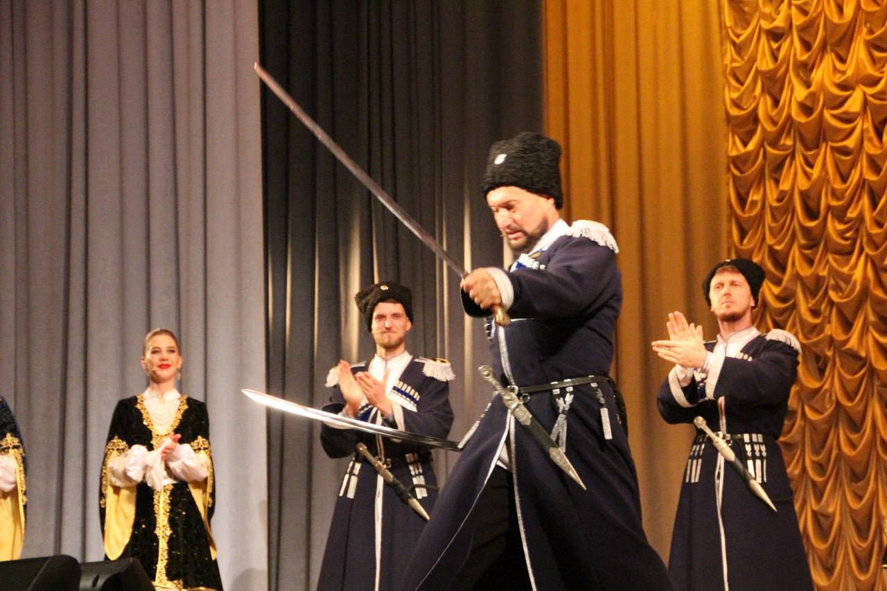Открыл концерт зажигательный «Терский пляс» в постановке заслуженного артиста РФ Александра Стяжкина. Эта вокально-хореографическая композиция раскрывает колоритное сочетание горских и казачьих традиций.