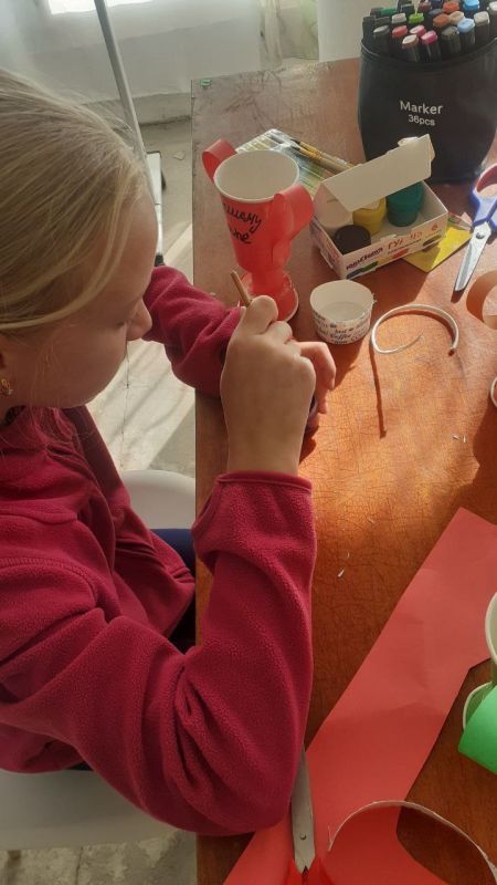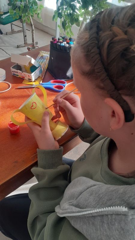 Чернозёмненский СДК совместно с сельской библиотекой организовали мероприятие для детей, на котором изготовили поделки "Кубок для папы".