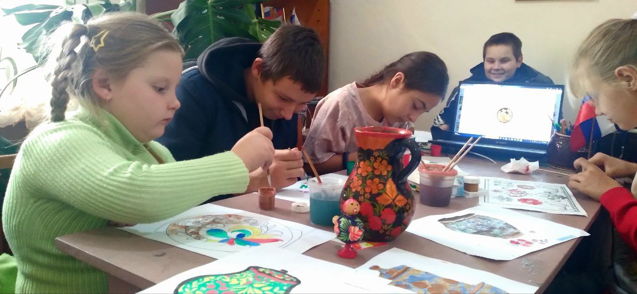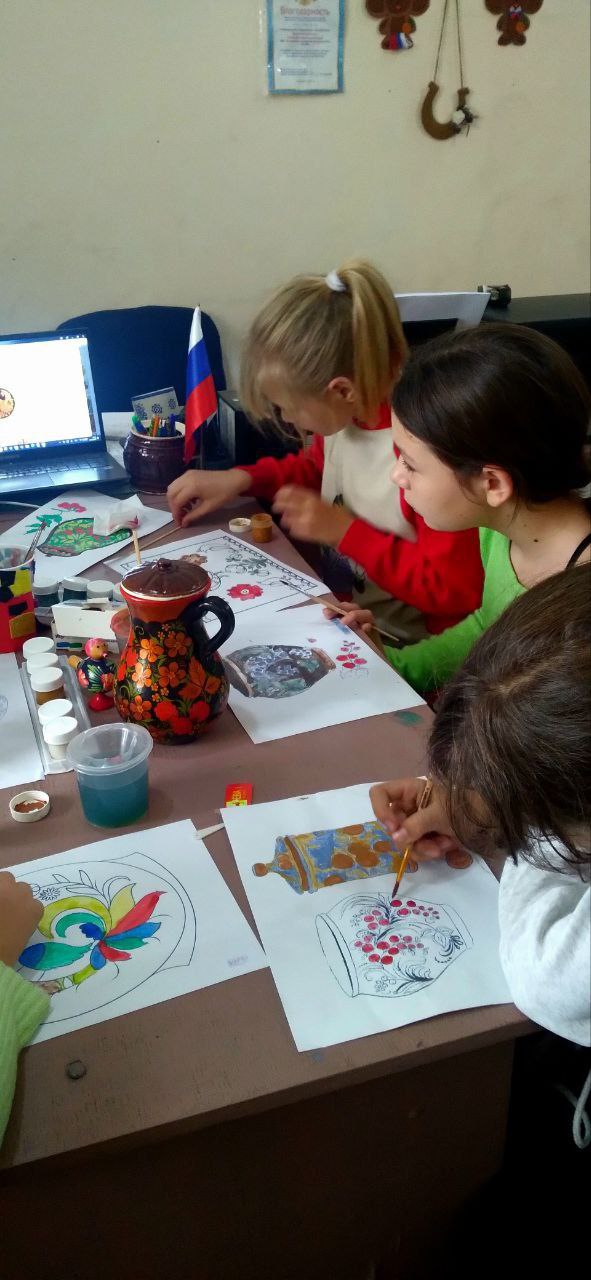 На мероприятии участники познакомились с символами России - Хохломской росписью и Городецкой, узнали об истоках этого вида искусства. В рамках программы проведен мастер-класс по росписи. Ребята пробовали себя в роли мастеров народных промыслов.