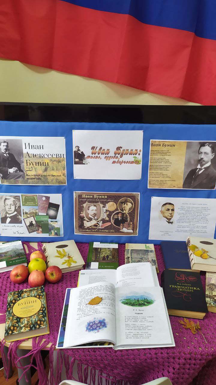 В честь памяти замечательного русского писателя в Приморско-Посадской сельской библиотеке посетителей ждёт встреча с его произведениями на представленной книжной выставке "Иван Бунин: жизнь, судьба, творчество". На выставке читатели найдут стихи, повести и рассказы написанные в разные годы жизни. Это "Антоновские яблоки", "Темные аллеи", "Лёгкое дыхание", ""Жизнь Арсеньева".