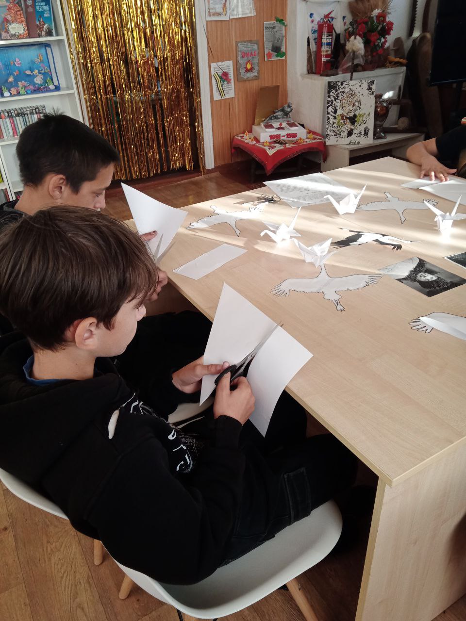 Сегодня провели в Николаевском сельском доме культуры совместно с библиотекой мастер-класс "Белый журавль" и возложили цветы в день светлой памяти всех погибших солдат.