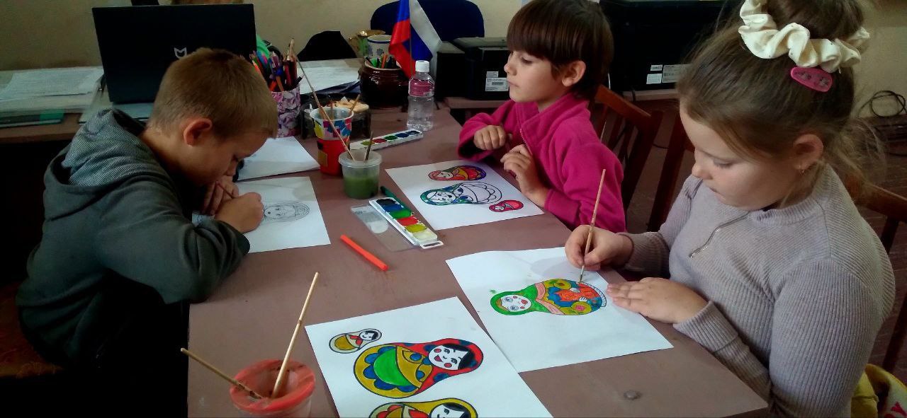 В рамках работы "Волшебной мастерской" Переможненского СДК ребята учились рисовать матрёшки, создали свою персональную красавицу, а также общую фотозону "Русская матрёшка".