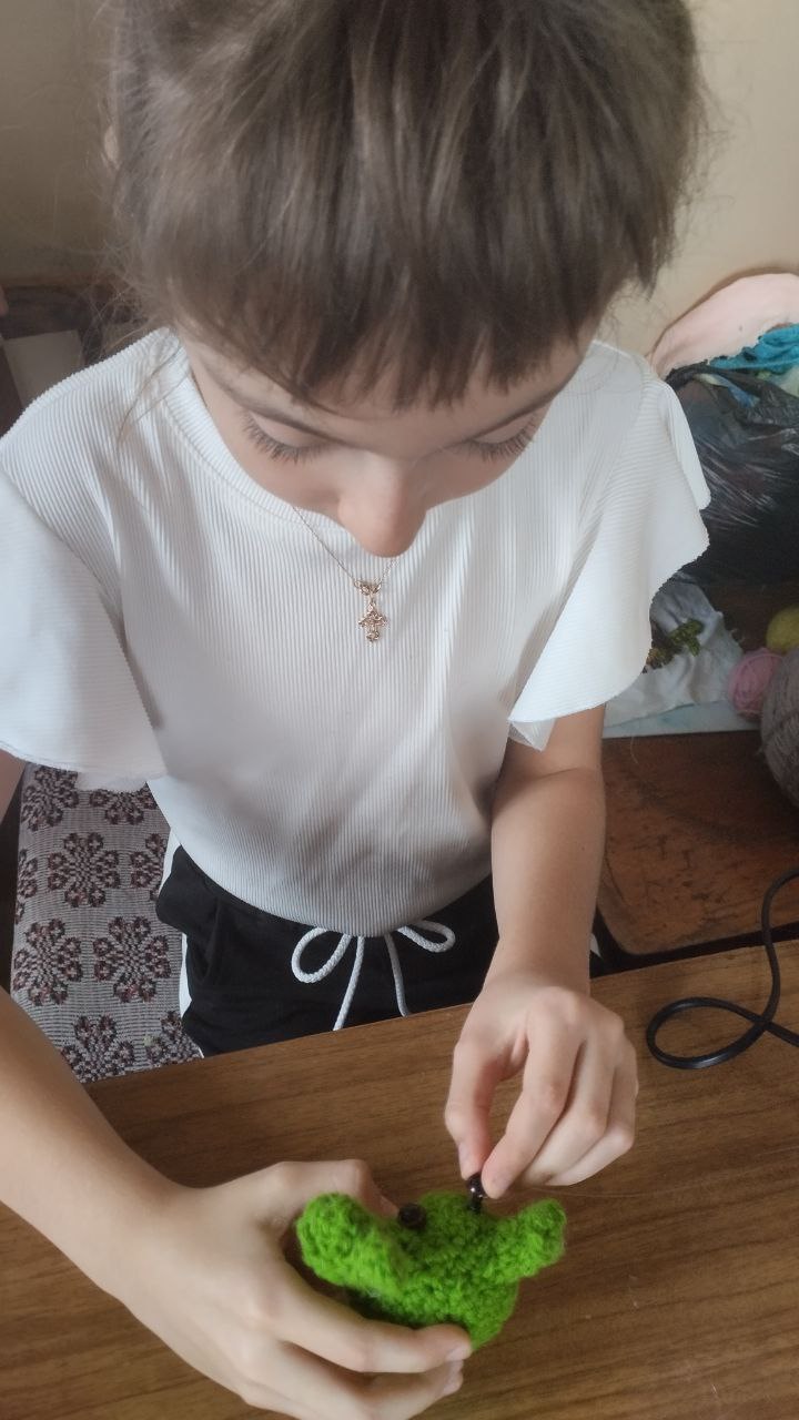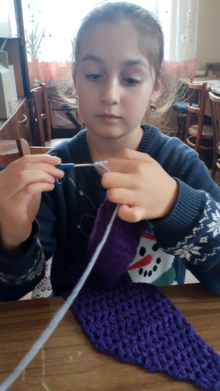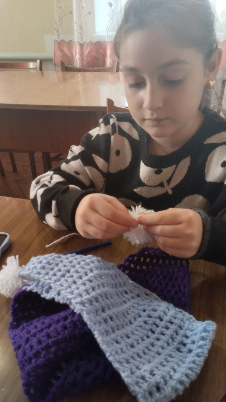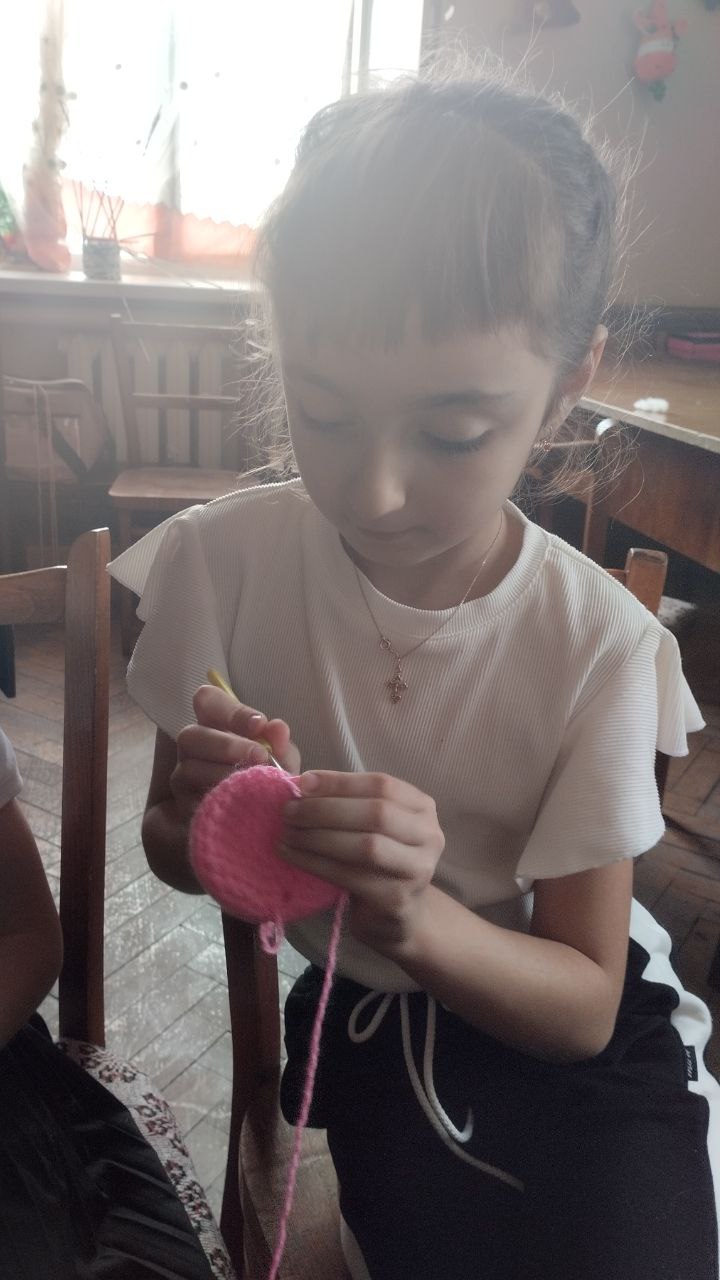 В Приазовском ДК кружок " Вязания крючком " продолжает свою работу. На этот раз девочки продемонстрировали своё мастерство, создав ажурный шарф, а также забавную игольницу " Кактус"