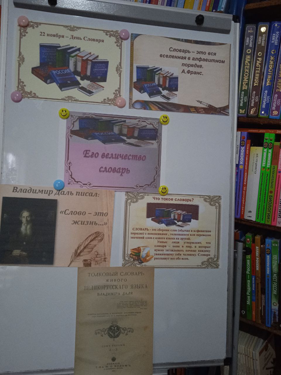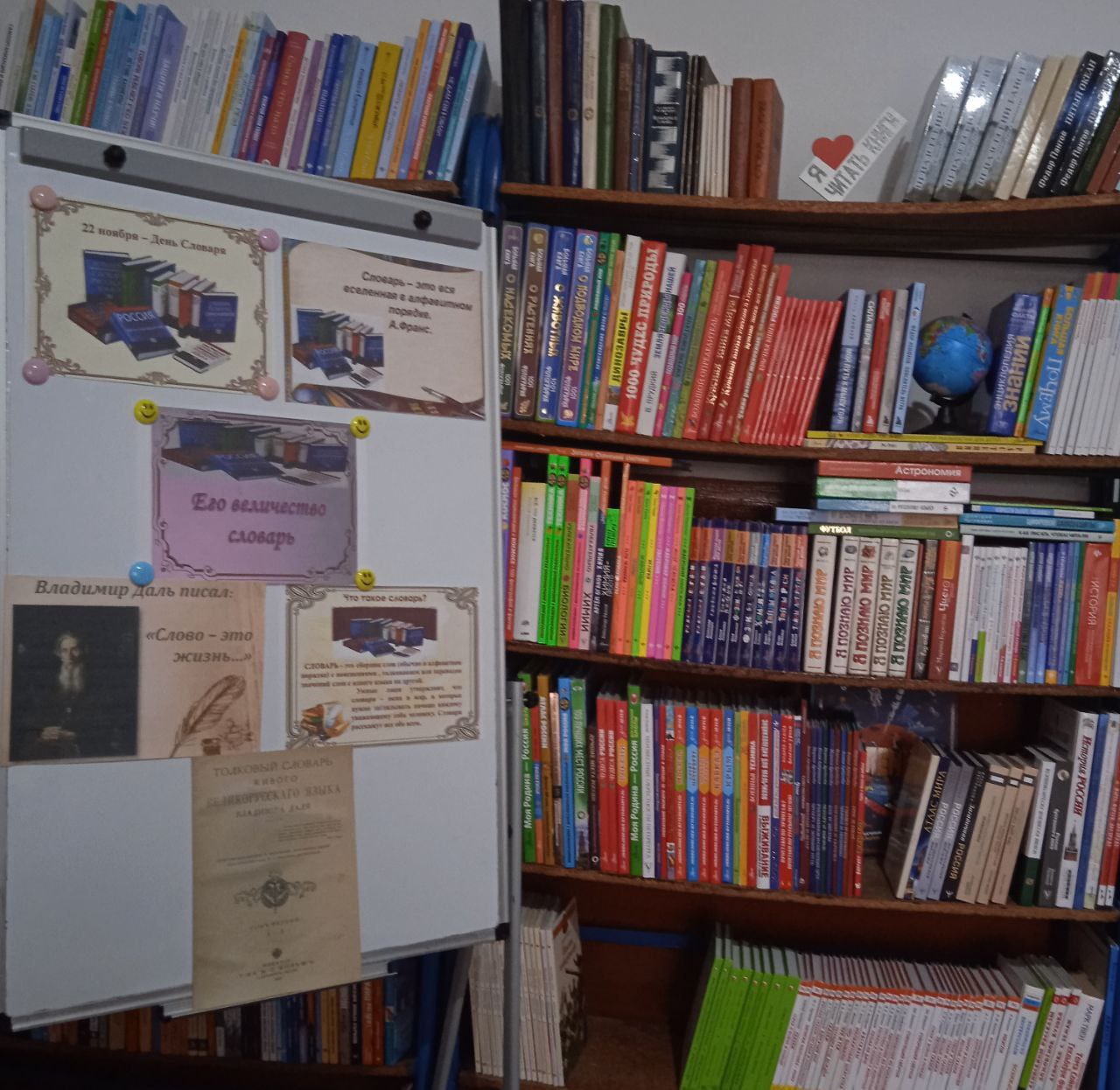 Накануне праздника в Дмитриевской сельской библиотеке для читателей проведён час интересной информации с обзором книжной выставки "ЕГО ВЕЛИЧЕСТВО СЛОВАРЬ!"
