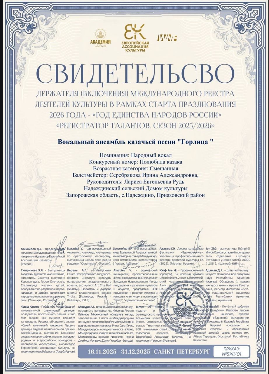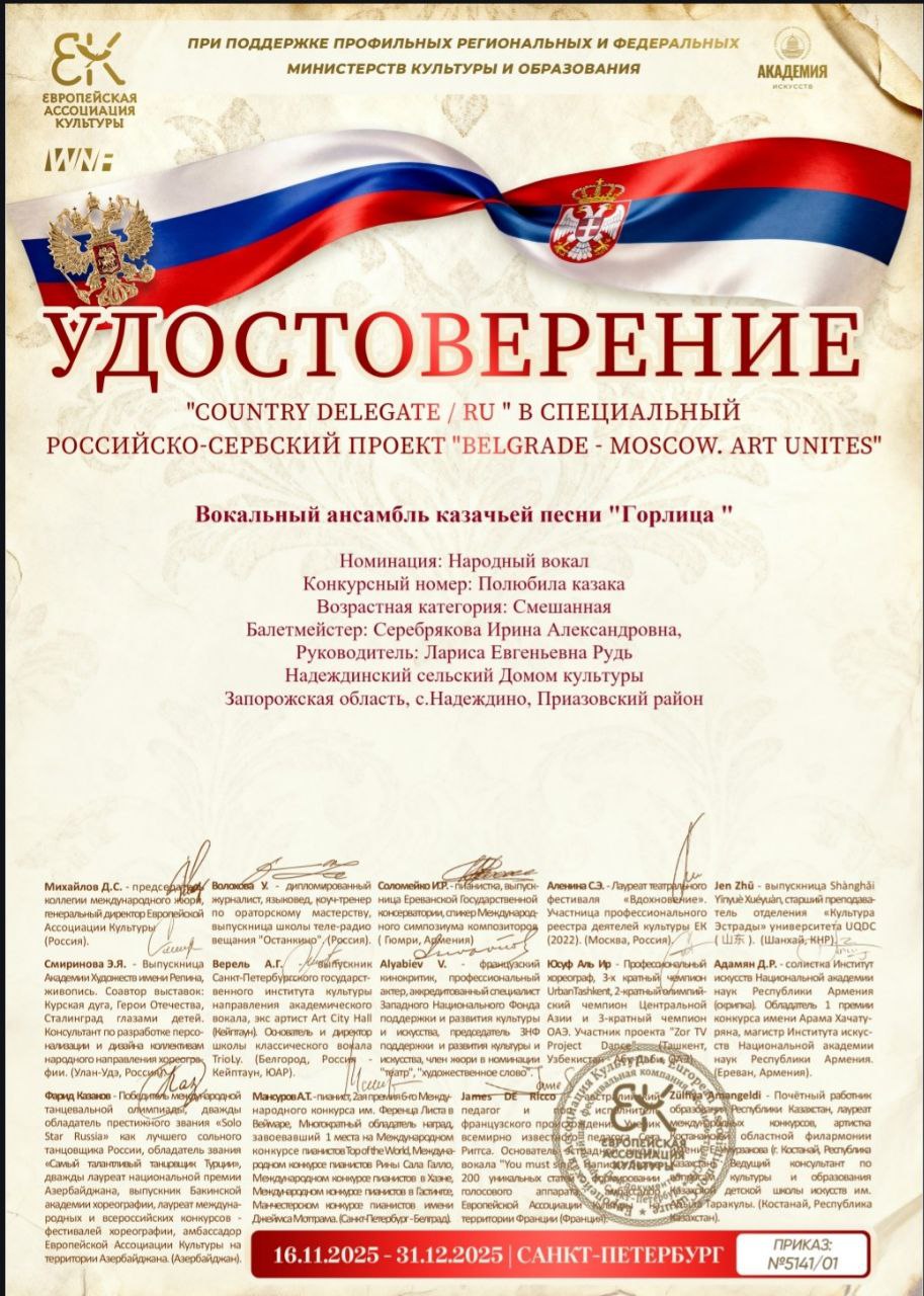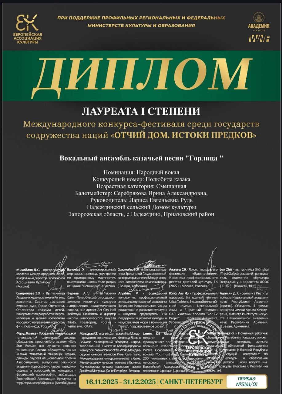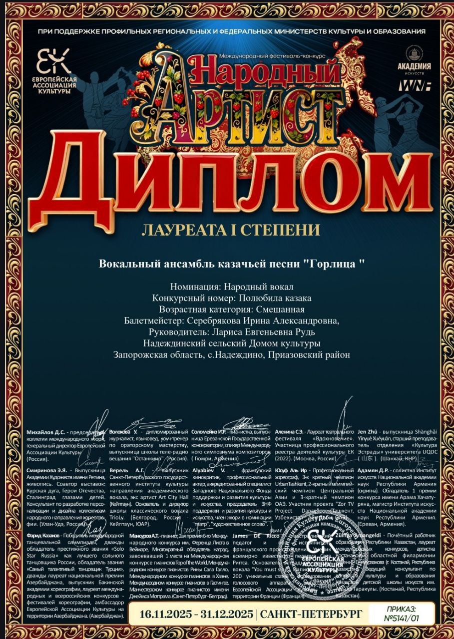 Вокальный ансамбль казачьей песни " Горлица " принял участие в IV Международном конкурсе-фестивале в области культуры и образования "Народный Артист".