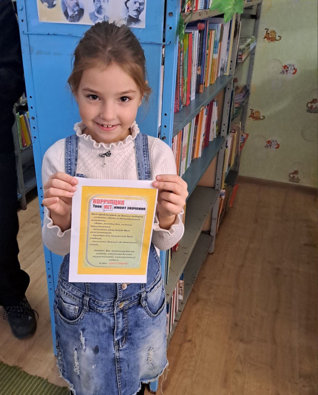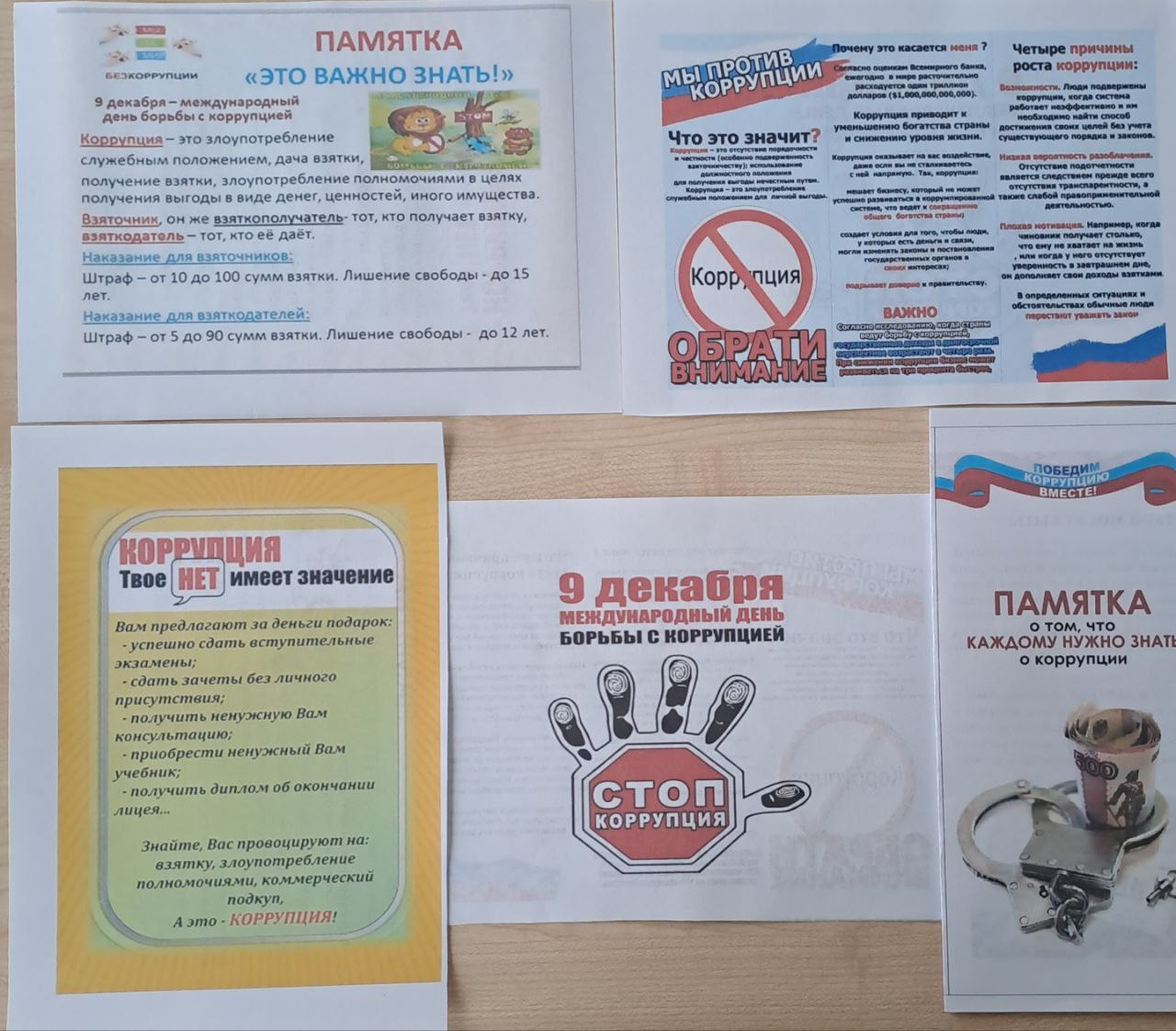 Гаммовская сельская библиотека провела акцию "Мы против коррупции ", в рамках которой жителям села раздавали информационные буклеты и памятки на тему "Если у вас вымагают взятку ". В которых в доступной форме рассказано о понятии "коррупция ", что такое взятка , и какое наказание несут лица, которые дают взятку, и те, кто её получает.