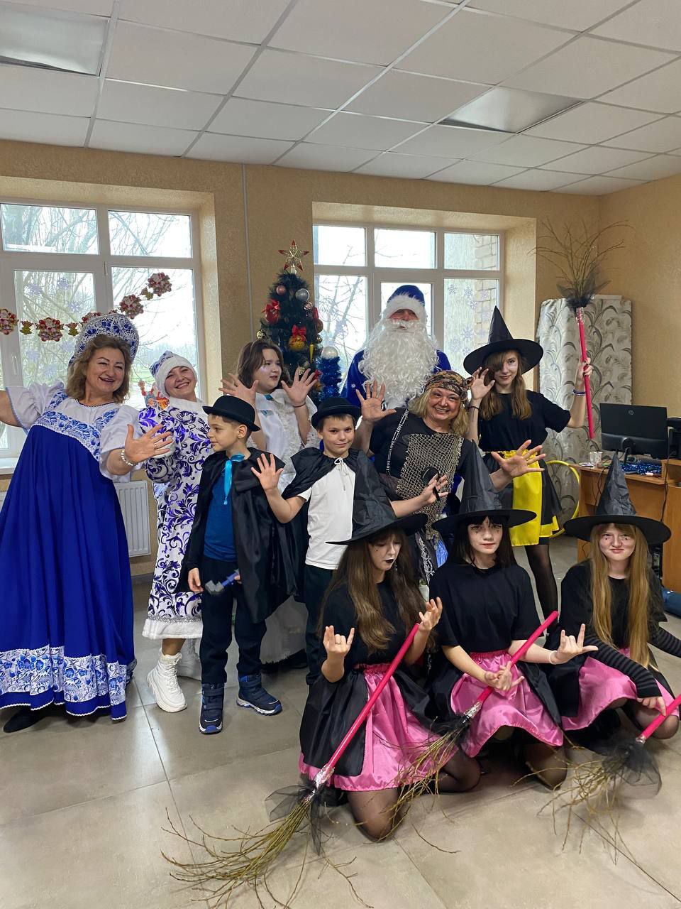 ёжки, и ледяная Вьюга,и смелые сыщики. Дети танцевали,играли и,конечно,звали Дедушку Мороза со Снегурочкой. Зал сиял, а детские глаза светились ещё ярче!