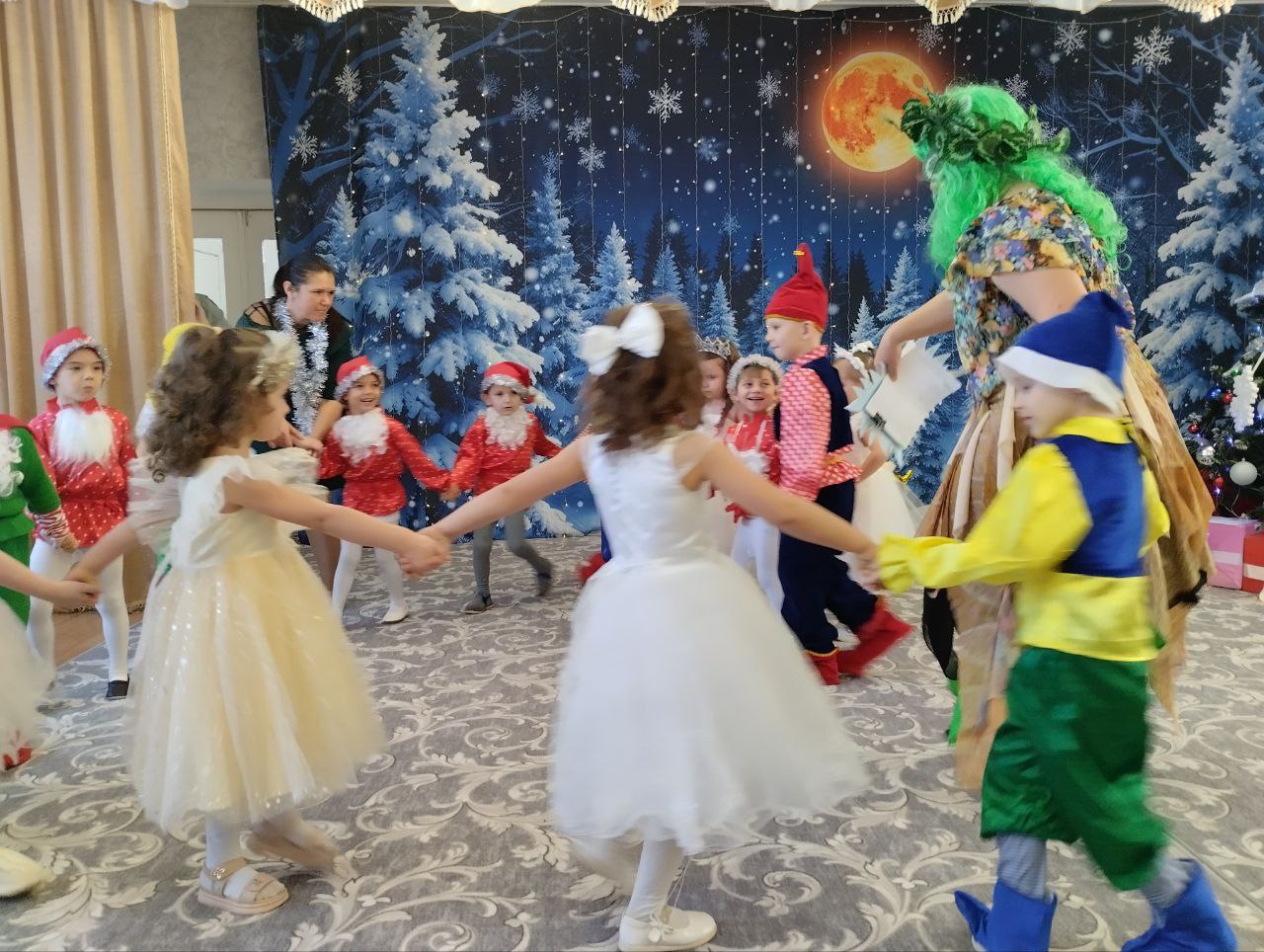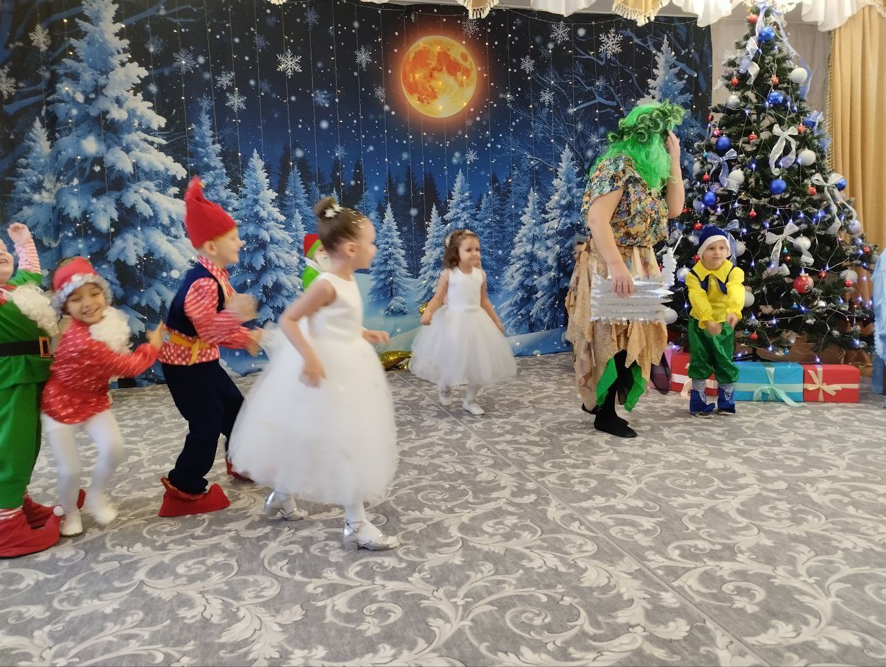 Разноцветные, сверкающие гирлянды и ярко украшенная ёлочка принесли ребятам ощущение чуда. С самого начала представления сказочные герои увлекли детей в волшебный мир сказки. Дети окунулись в праздничную атмосферу приключений.