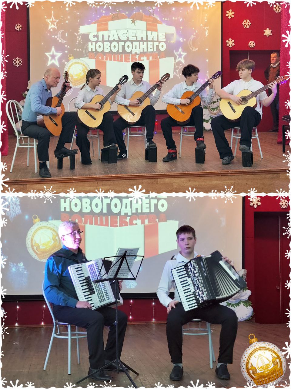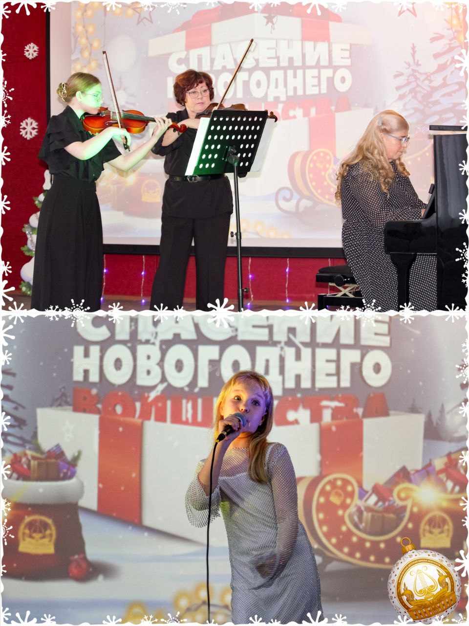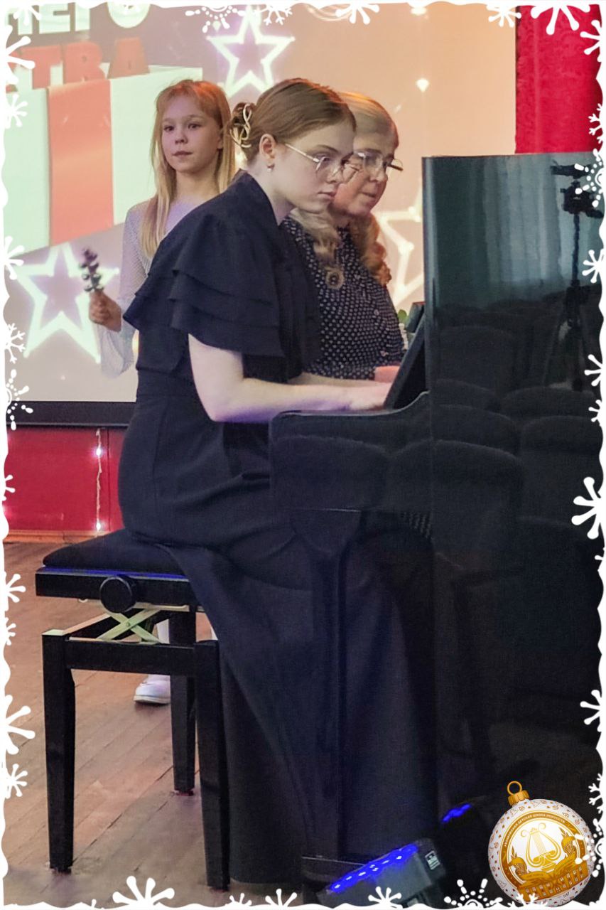 Невероятно нежным было выступление скрипичного ансамбля в составе Третьяк Валерии и Козиненко Ирины (концертмейстер Опикунова Юлия). Дружно аплодировали и подпевали вокальному трио в составе Стрюковой Александры, Жеребецкой Влады, Мирсаидовой Жасмин (преп. Гейман Лариса Юрьевна). Своё мастерство игры на аккордеоне демонстрировал Андрющенко Дмитрий со своим преп. Кулешовым Сергеем. Предновогодним настроением с присутствующими поделились Лысак Иванна и преп. эстрадного вокала Михайлютенко Елизавета.