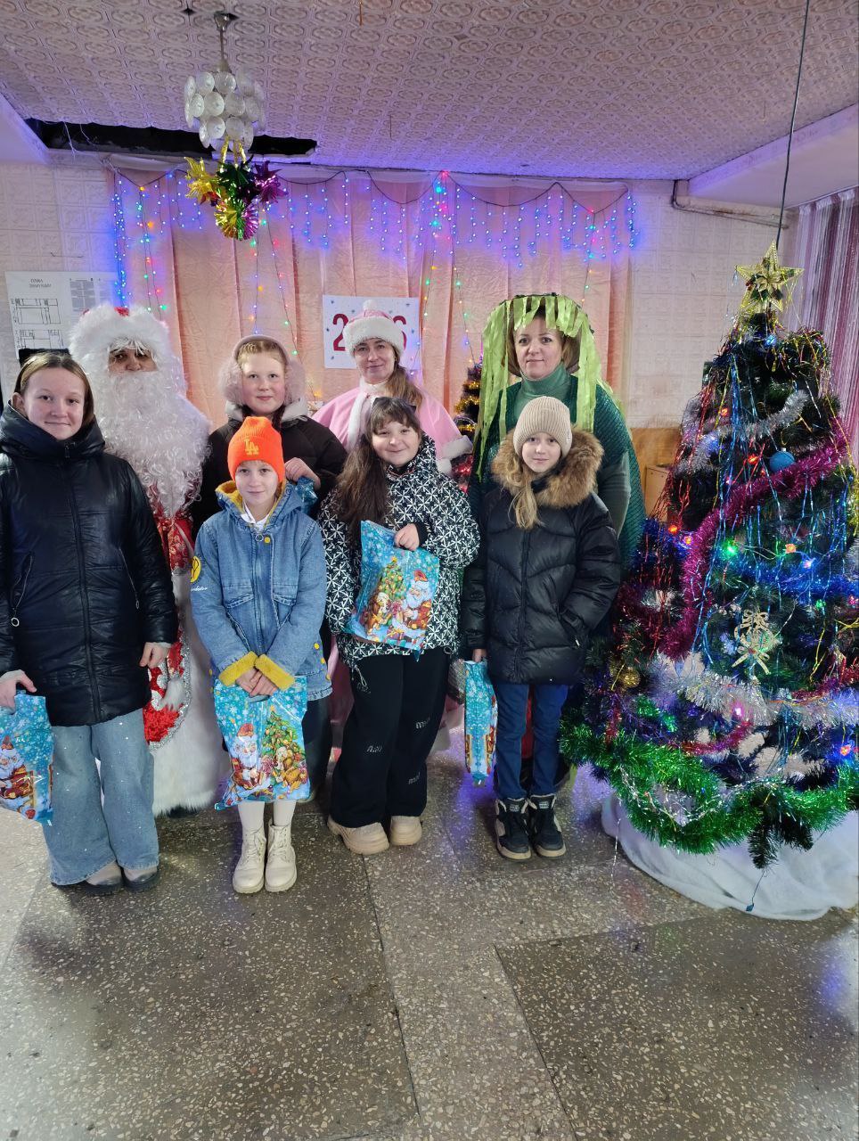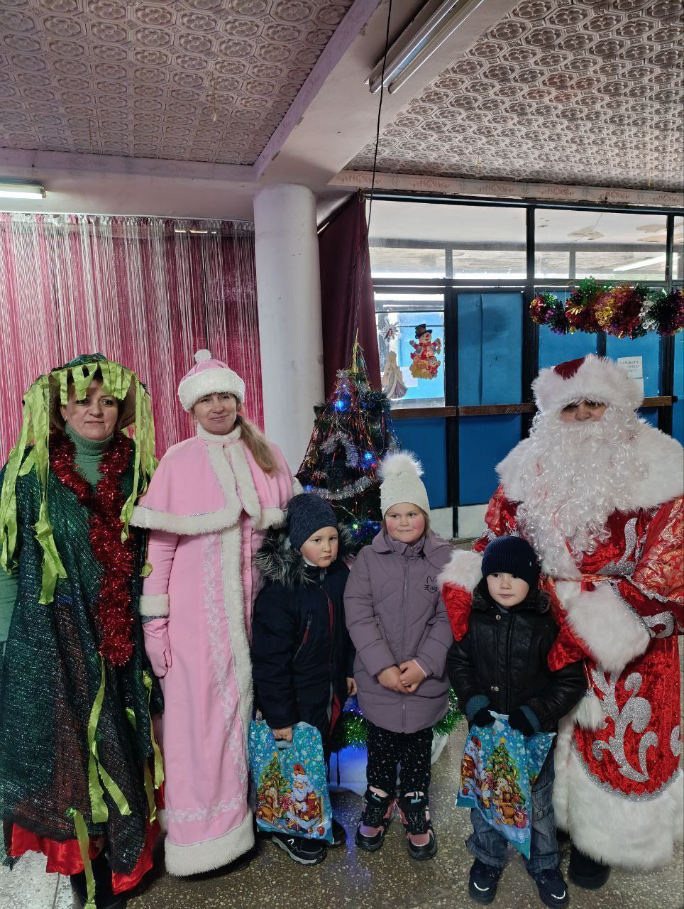 Самые маленькие детишки смогли сфотографироваться с Дедом Морозом, Снегурочкой и Кикиморой, получить небольшой подарок. Вокальный детский коллектив "Фантазия" исполнил новогодние песни.