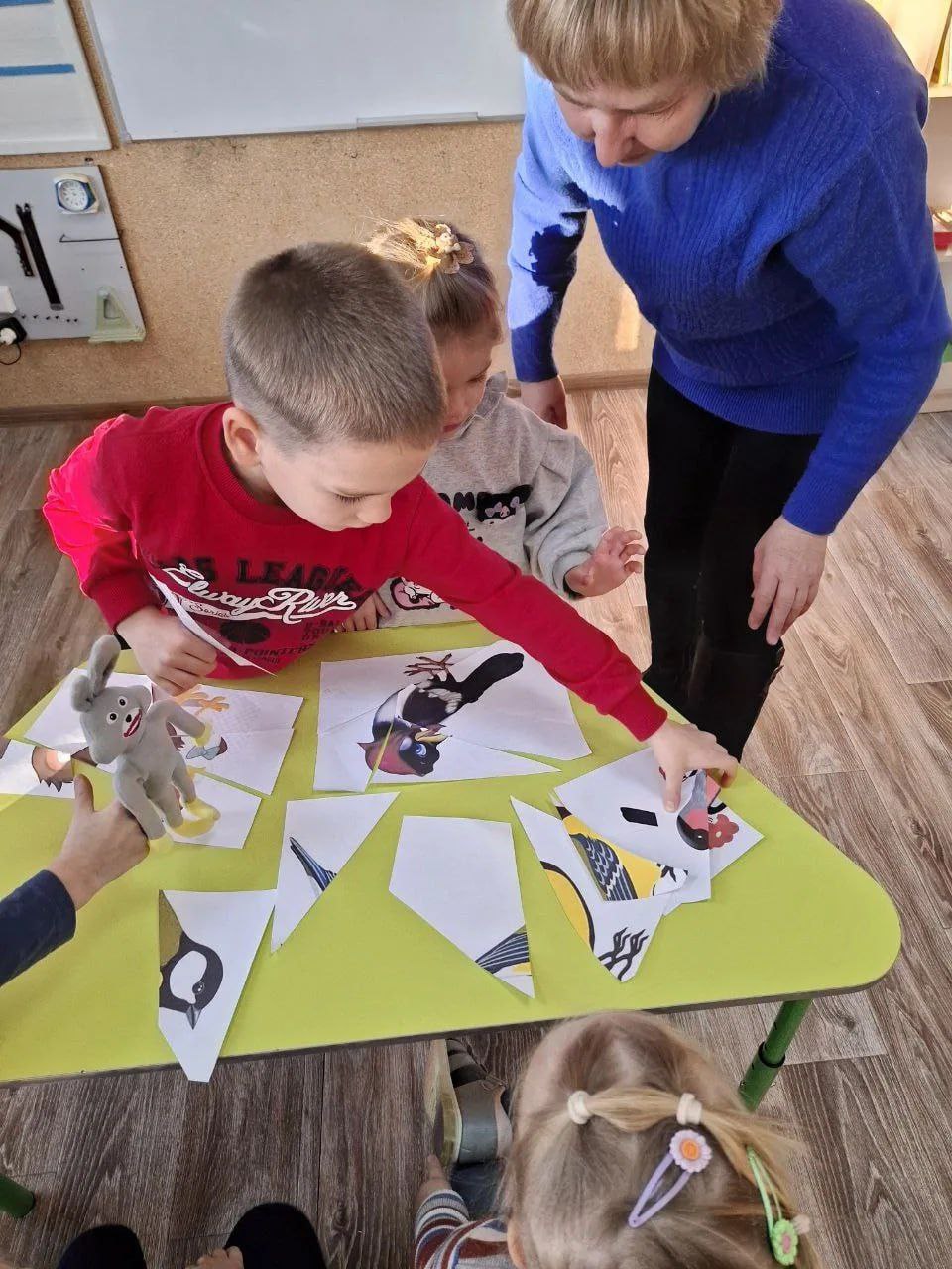 В увлекательной форме малыши совершили путешествие в мир природы - с удовольствием отгадывали загадки про зимующих птиц, поиграли в игру "Прилетели птицы... ", "Собери картинку", вместе прочитали рассказы "Воробей" Е. Чарушина, "Вежливая Галка" Н. Сладкого.