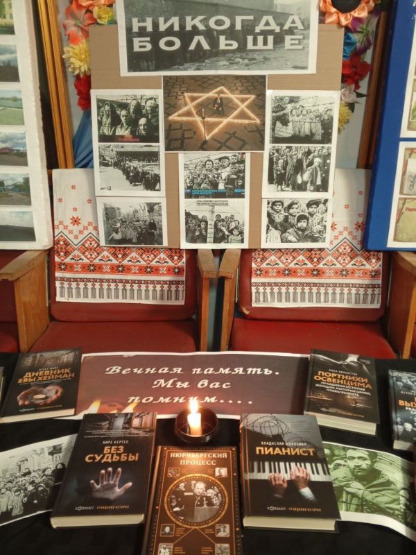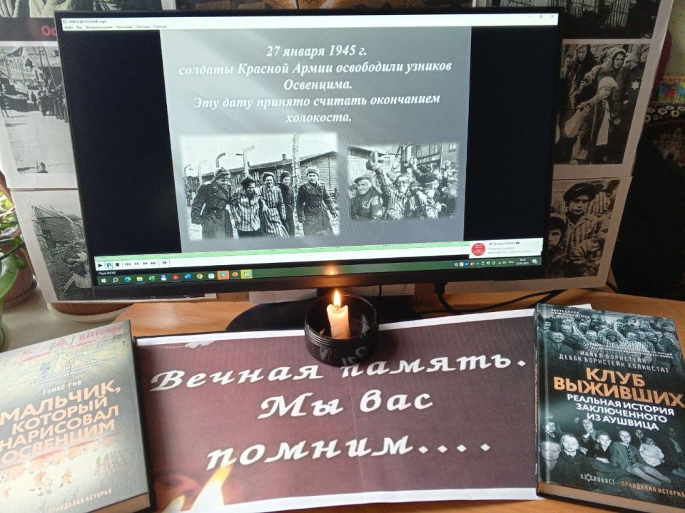 В рамках «Недели памяти», посвящённой Международному дню памяти жертв Холокоста, в Шевченковской библиотеке оформлена тематическая книжно-иллюстративная выставка «Холокост. Память поколений». Видео-презентация и книги, представленные на выставке, рассказывают о том, какую трагедию перенес еврейский народ, поляки, советские военнопленные в годы второй мировой войны, о причинах геноцида, начатого в центре Европы, о нацистских преступлениях на оккупированных территориях разных стран во время Второй мировой войны.