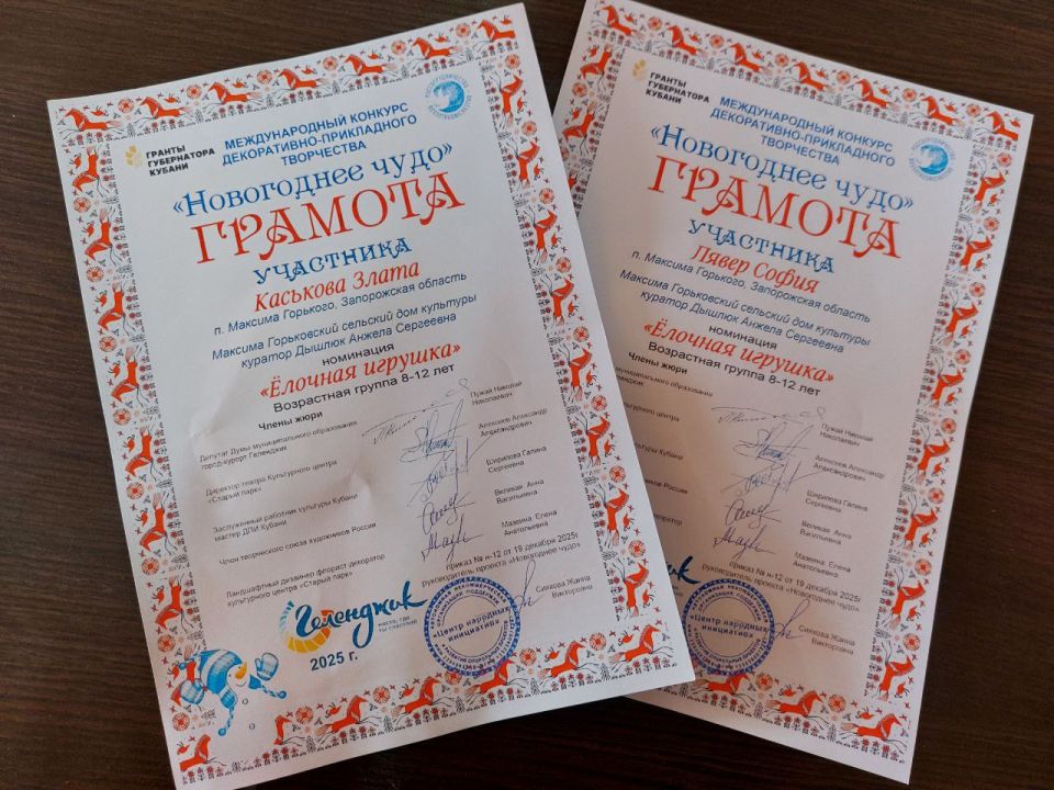 Поздравляем участников художественной самодеятельности и сотрудников Горьковского СДК и Волчанского СК с успешным участием в Международном конкурсе декоративно-прикладного творчества «Новогоднее чудо».
