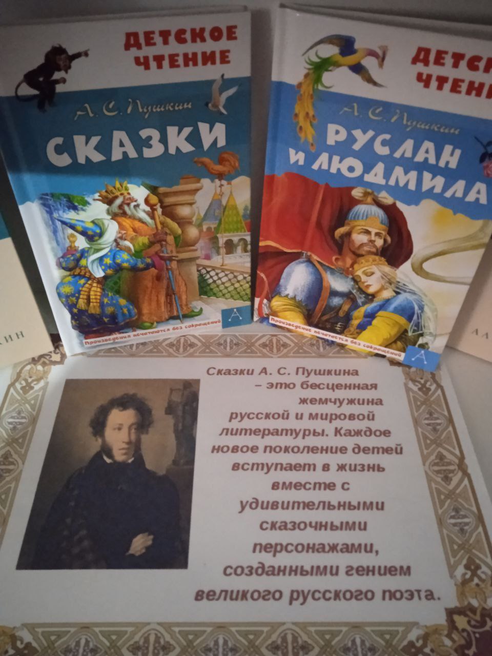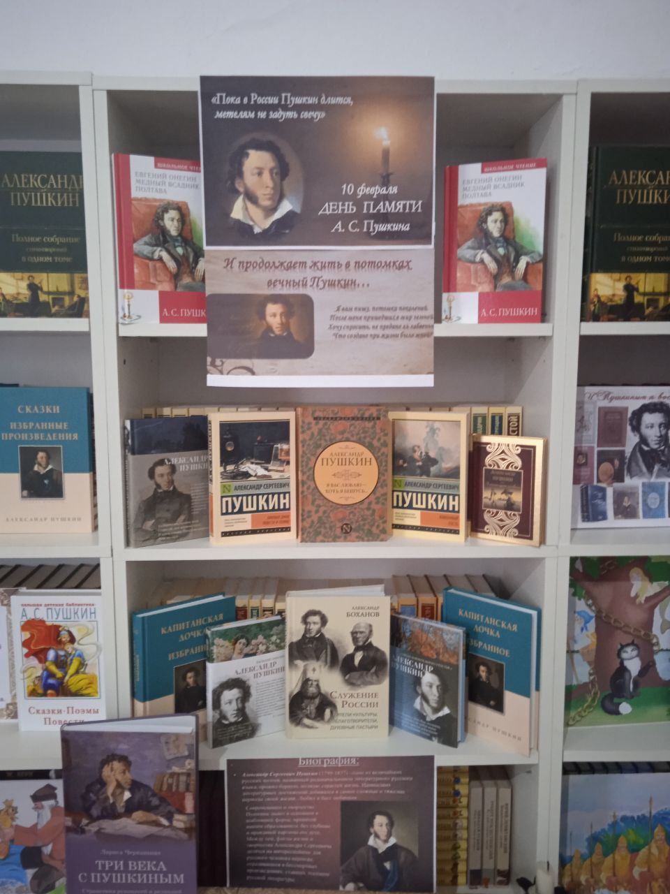 Тематический материал и книги, предоставленные на этой выставке, знакомят посетителей с историей жизни и причиной гибели поэта, помогают расскрыть интересные страницы из жизни великого русского писателя, рассказывают о его самых известных произведениях.