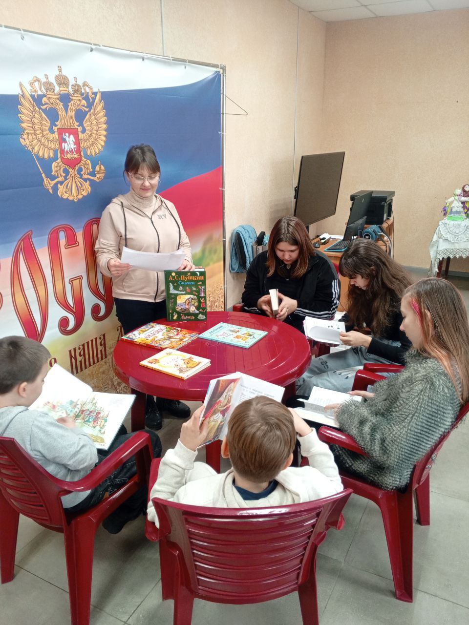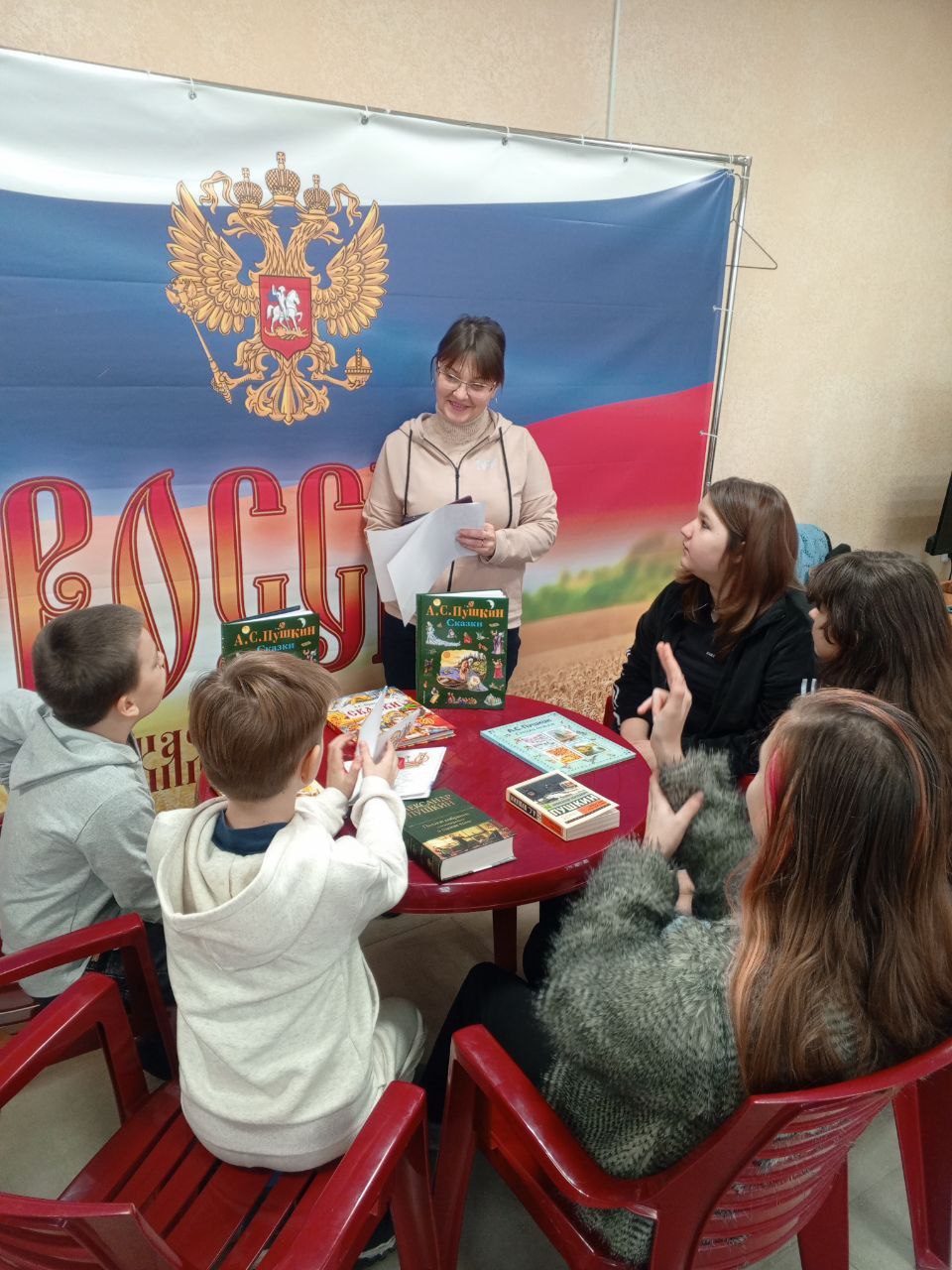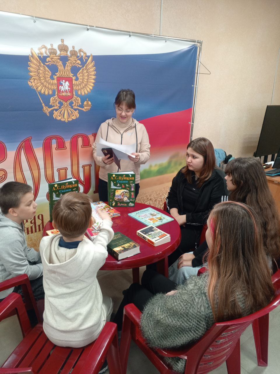 Библиотекарь ознакомила ребят с интересными фактами из жизни великого поэта, с его творчеством. Во время беседы участники говорили о многогранности Пушкина, о вкладе великого русского поэта. Ребята с удовольствием не только знакомились с биографией Пушкина, но также читали произведения Александра Сергеевича - сказки, стихотворения и романы, драмы и поэмы пронизанные светом добра, любви и красоты.