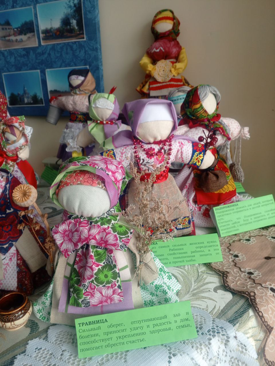Куклы - обереги дарились родным и близким людям. Их предназначение можно понять по названиям. Подорожница, Травничка, Пятиручка, Желанница, Крупеничка, Рябинка, Пеленашка и многие другие.Наши предки верили, что эти куколки оберегали владельцев, помогали им в быту и в делах и притягивали в дом любовь и благополучие.