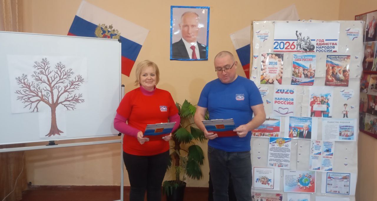 Почетное право открыть Год единства и запустить акцию «Лист единства» было предоставлено главе Давыдовского территориального отдела — Полковникову Виталию и главному специалисту Давыдовского территориального отдела - Шапаренко Ирине.