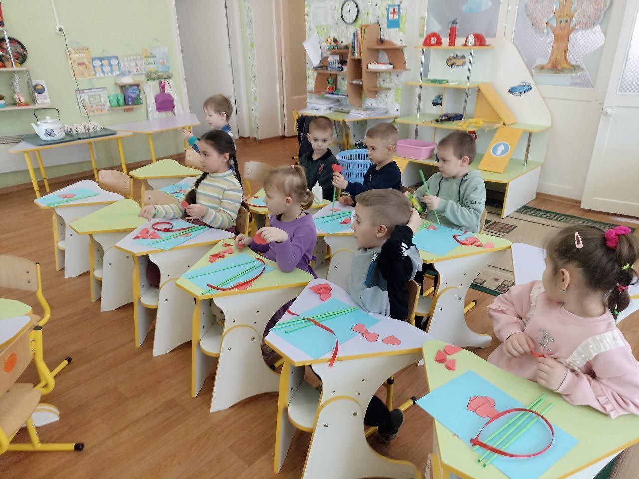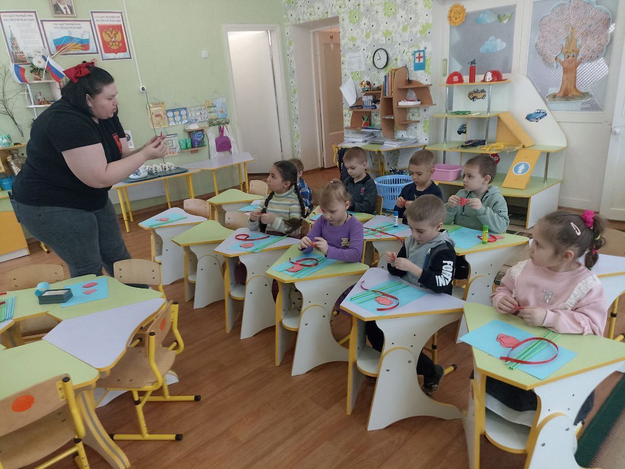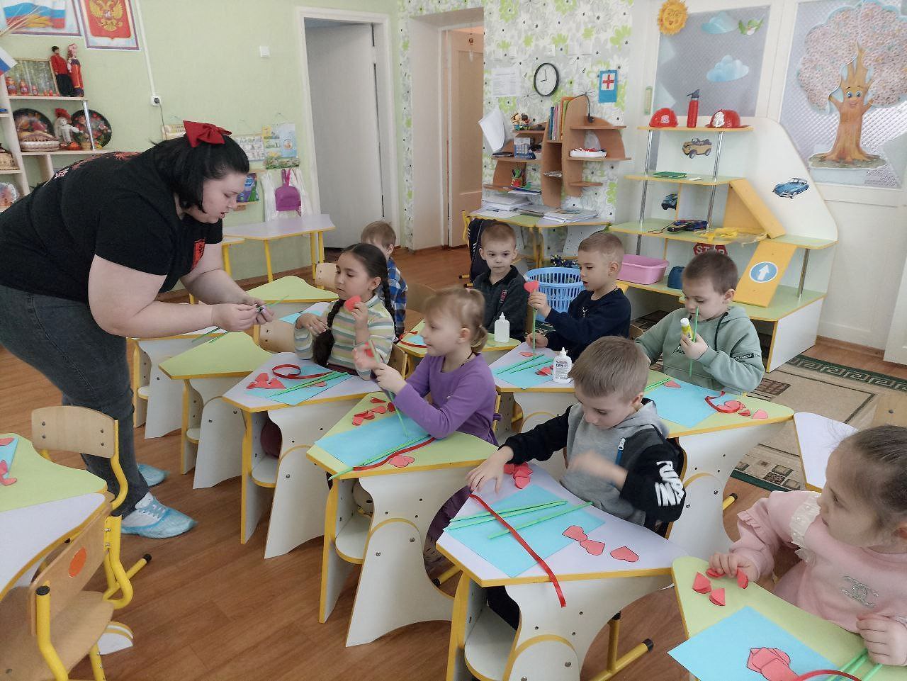 Сначала библиотекарь познакомила детей с историей праздника, провела беседу о самых дорогих,родных и любимых мамах.Под чутким руководством Виктории Владимировны дети клеили,подбирали цвета и материалы для работы.Занятие прошло оживлённо и интересно!