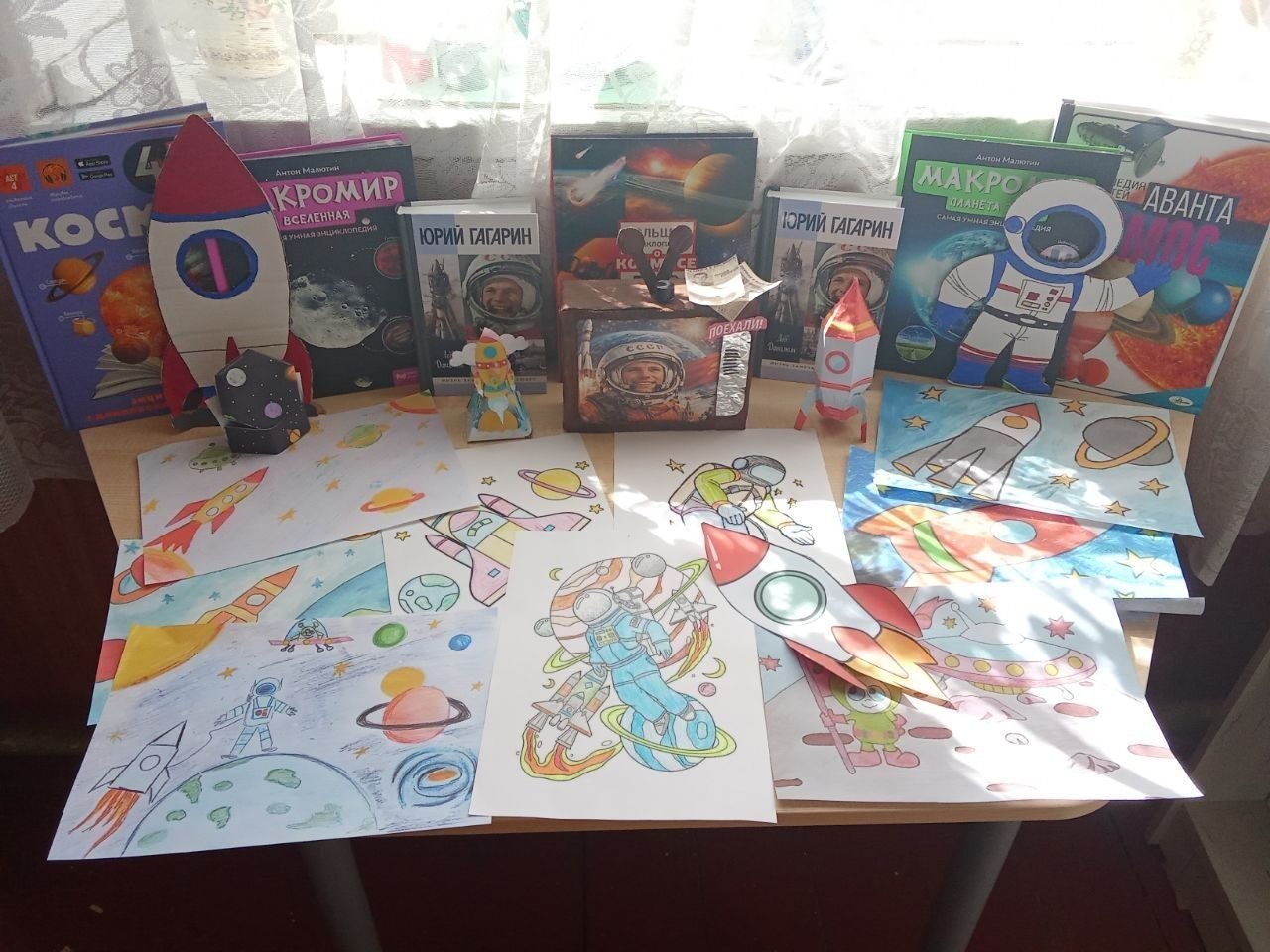На выставке будет представлены книги, которые помогут читателям познакомиться с историей развития космонавтики, расширять свои знания о Вселенной, космических телах и явлениях, узнать интересные мифы и легенды, а также содержит информацию о первом космонавте земли — Юрии Гагарине, его детстве, любви к небу, о том, как он приближался к своей заветной мечте, шаг за шагом двигаясь вперёд навстречу к звёздам.