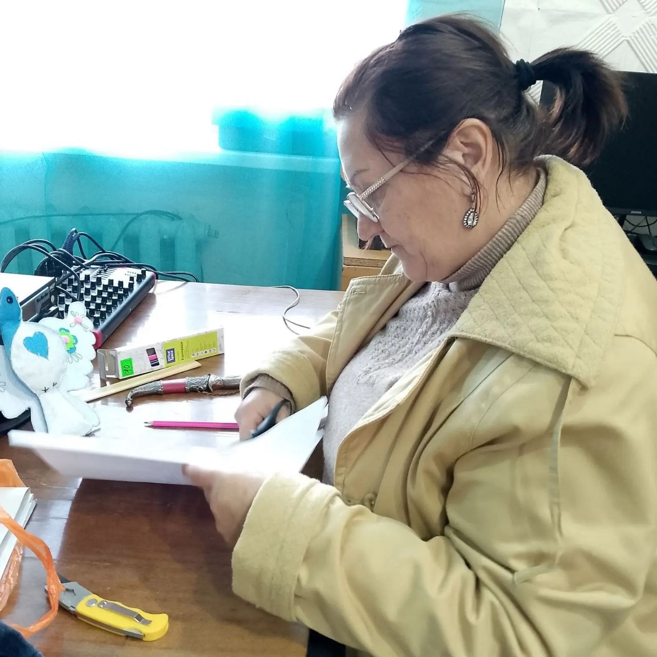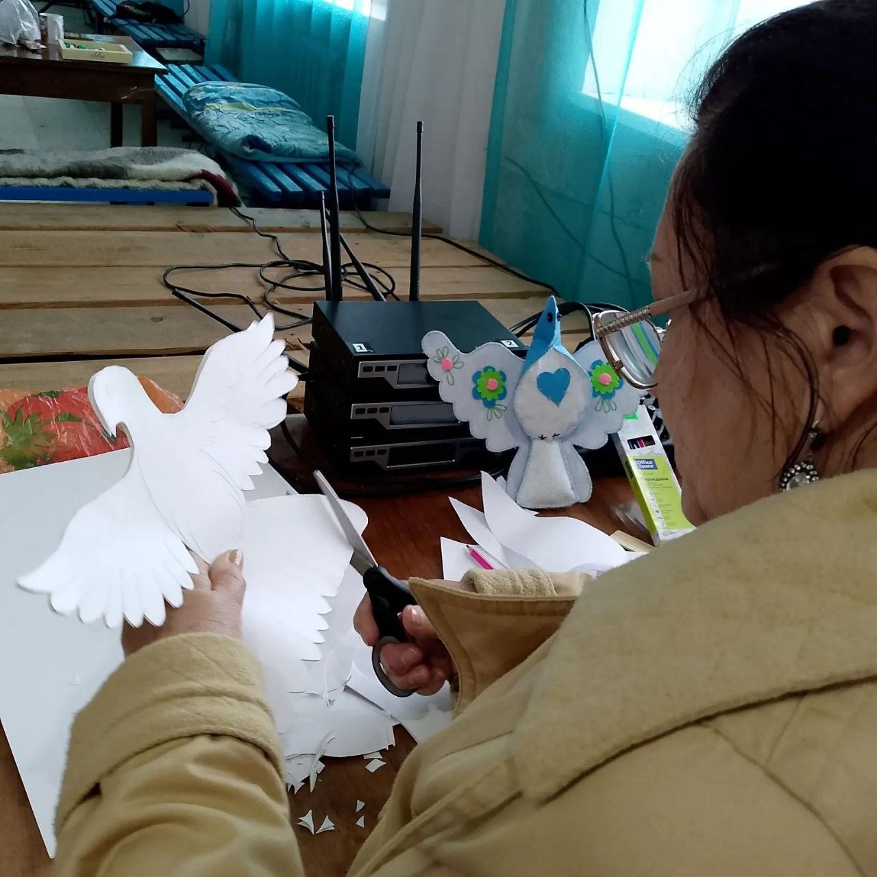 А тем времена в Доме культуры идет изготовление голубей из бумаги "Голубь мира-голубь Победы!