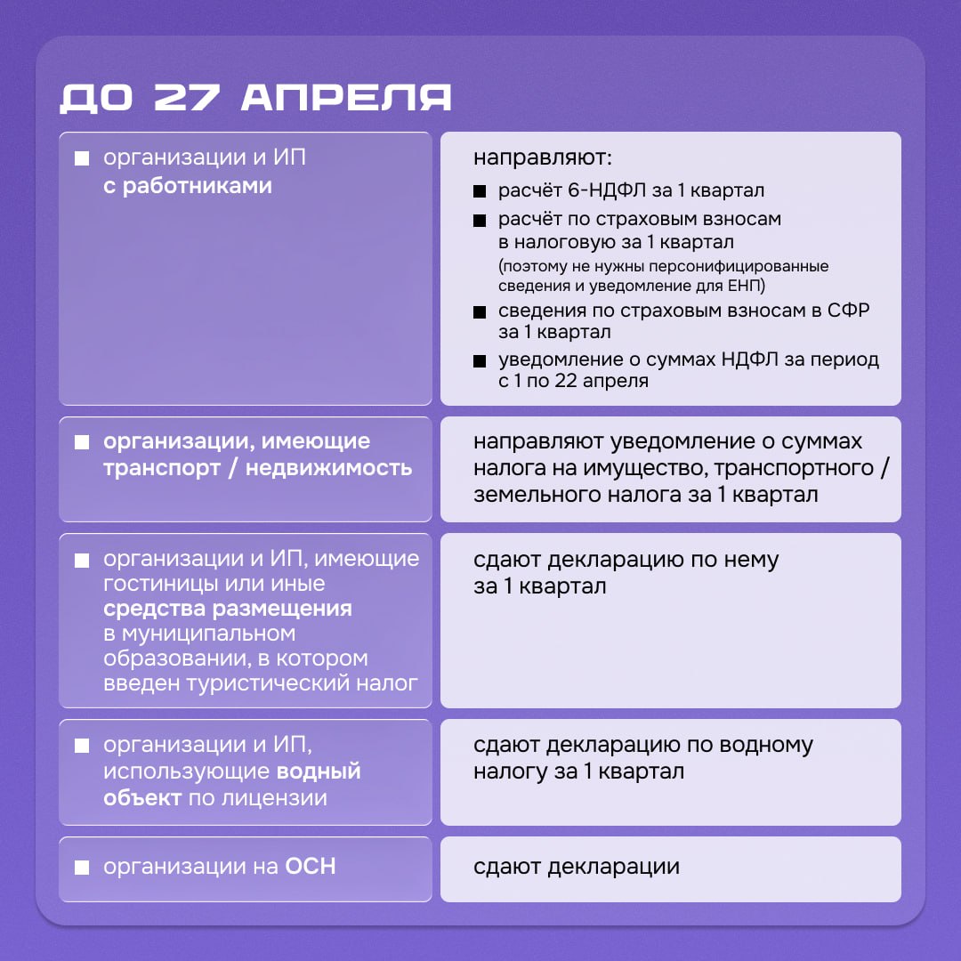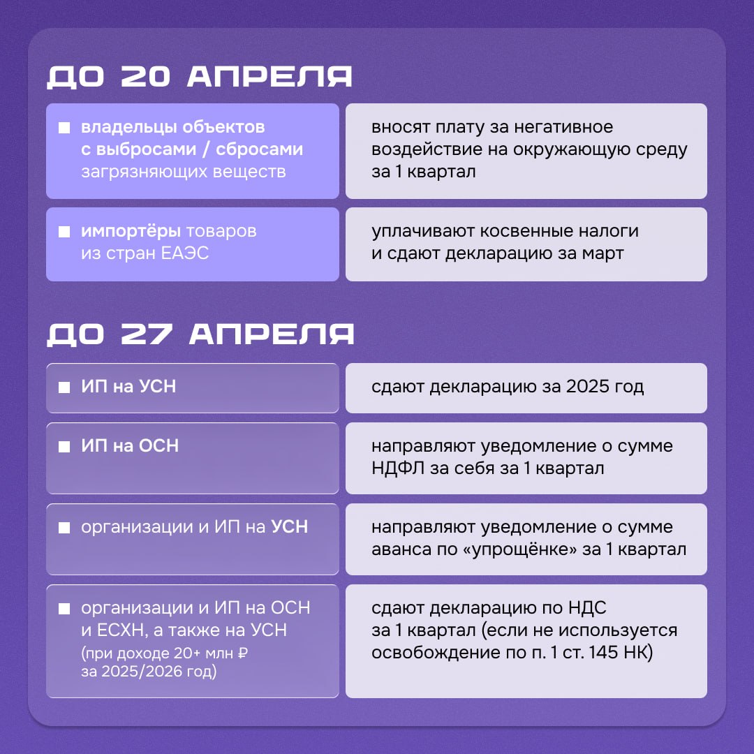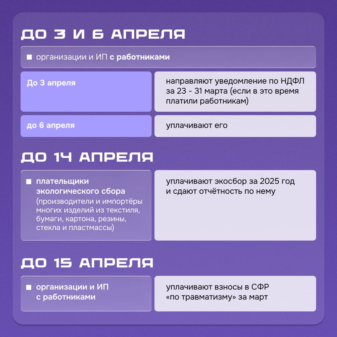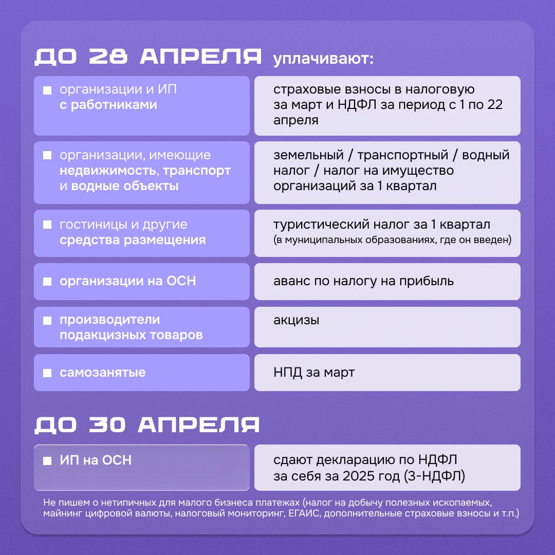 Календарь предпринимателя на апрель