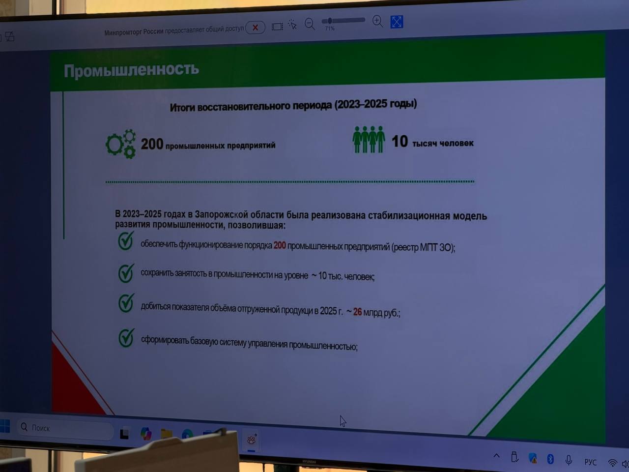 Принятые решения направлены на системное восстановление и развитие промышленности Запорожской области, что в конечном счёте означает укрепление экономики и создание рабочих мест для её жителей.
