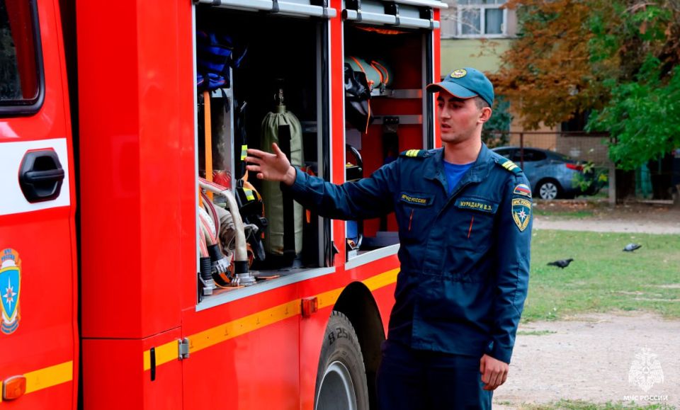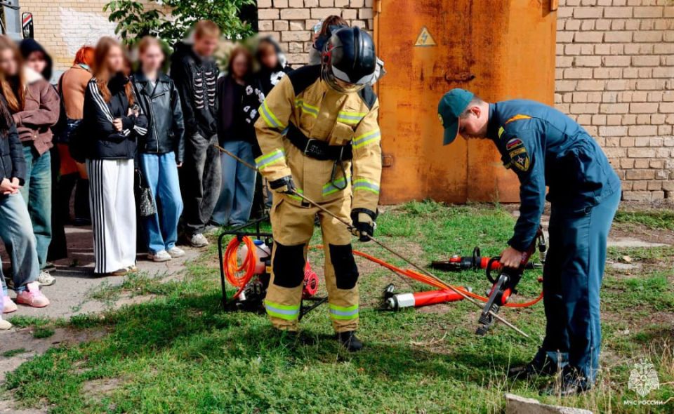 Для закрепления теоретических знаний, с учащимися были проведены практические занятия. Ученики отработали действия в случае возникновения чрезвычайной ситуации. Также у детей была возможность изучить пожарно-спасательную технику и больше узнать о профессии спасателя.