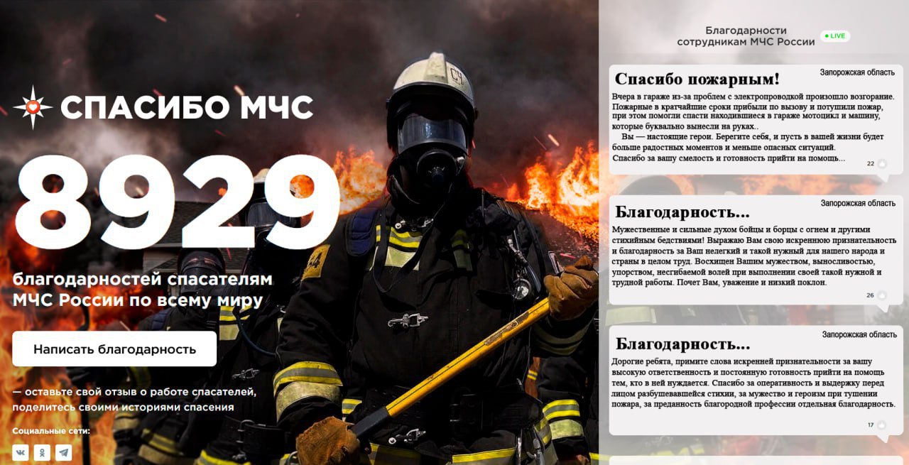 «Спасибо МЧС». Около 9 тысяч граждан сказали «спасибо» сотрудникам МЧС России