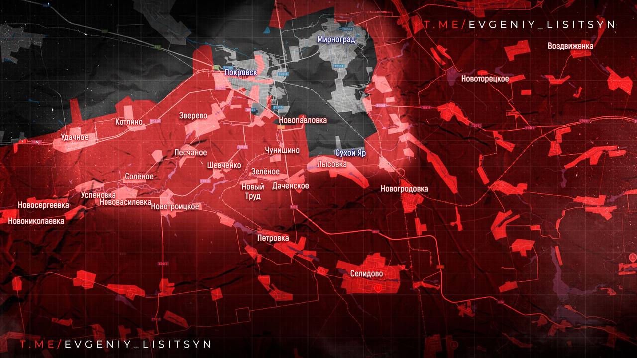 Идёт зачистка Красноармейска (Покровска), очаги сопротивления остаются в юго-восточной части. В Мирнограде (Димитрове) бои на нескольких направлениях. На Добропольском выступе - тяжёлые встречные сражения.