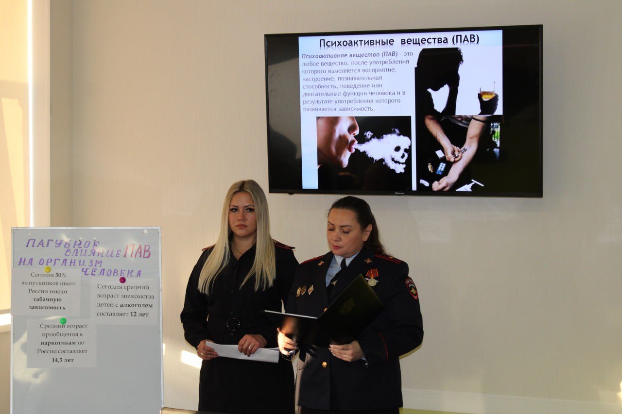 Целью встречи стало формирование у подрастающего поколения навыков безопасного поведения и устойчивого неприятия наркотической зависимости. Урок был проведен в рамках межведомственного взаимодействия правоохранительных органов и учреждений системы профилактики.