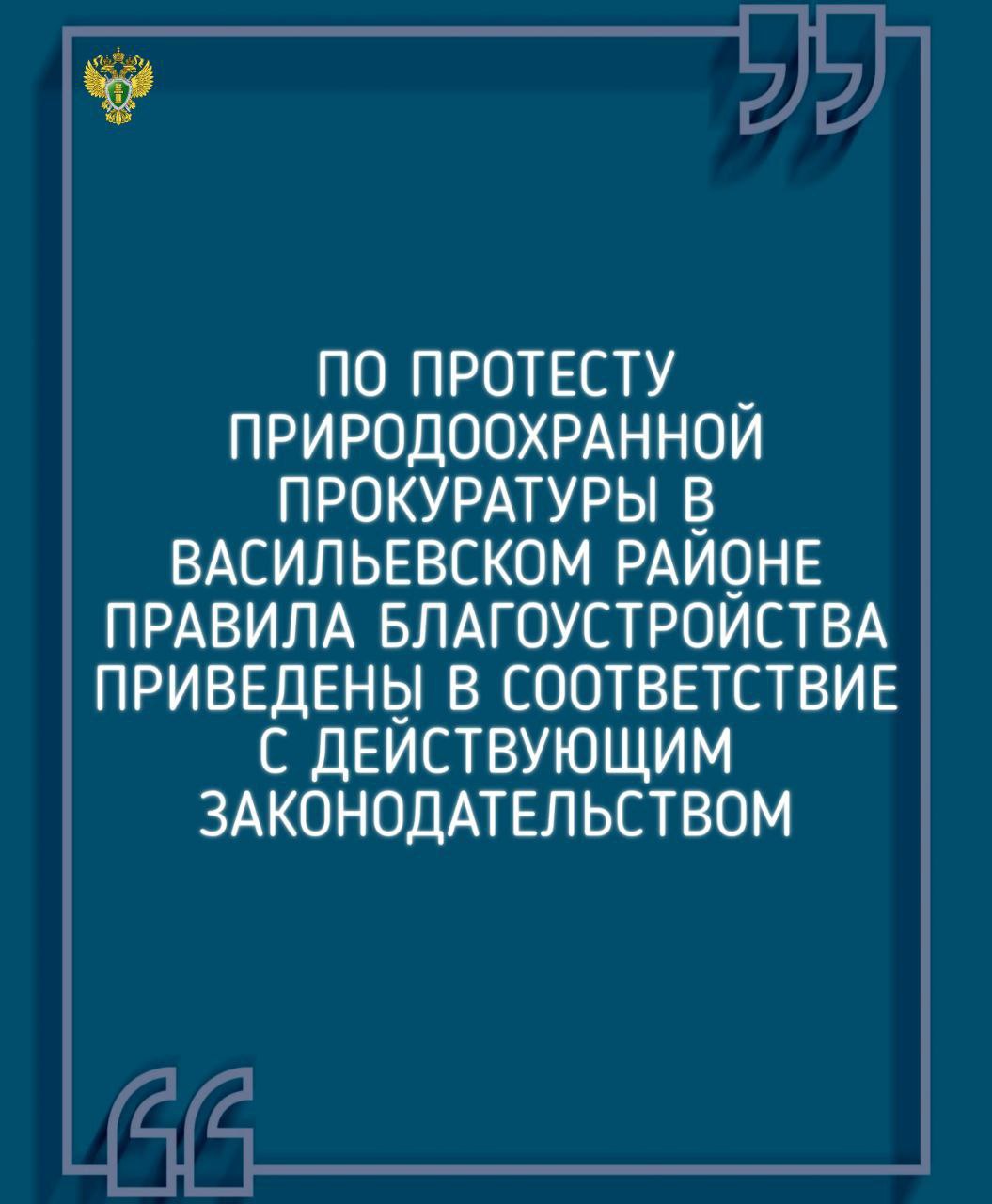 По протесту природоохранной прокуратуры в Васильевском районе правила благоустройства приведены в соответствие с действующим законодательством