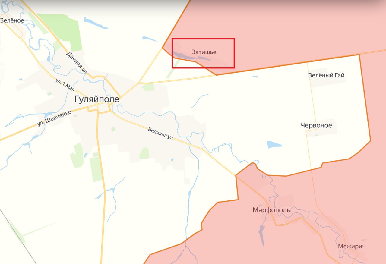 Юрий Котенок: МО РФ: н.п. Затишье (Запорожская область, Гуляйпольское направление) освобожден от украинской оккупации