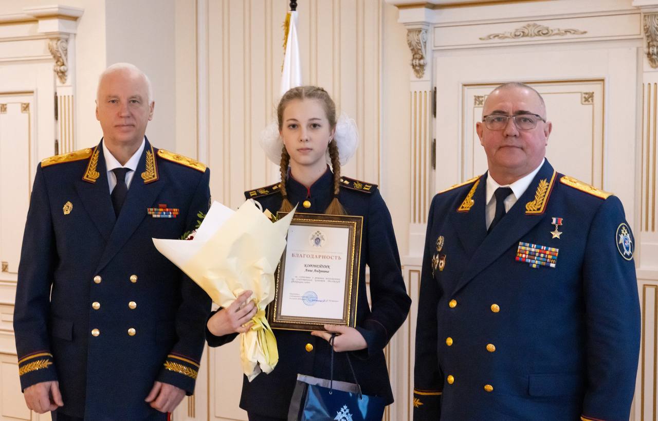 Председатель СК России вручил ведомственные награды детям, проявившим героизм и самоотверженность в спасении жизни и оказании помощи тем, кто в ней нуждался. Так, медалью «За высокую гражданственность» награждена ученица 10 класса Алиса Бобровская, которая при поддержке своего отца, участника СВО, вывела людей с места пожара, что позволило избежать трагических последствий. А.А. Бобровскому также вручена медаль «Доблесть и отвага».