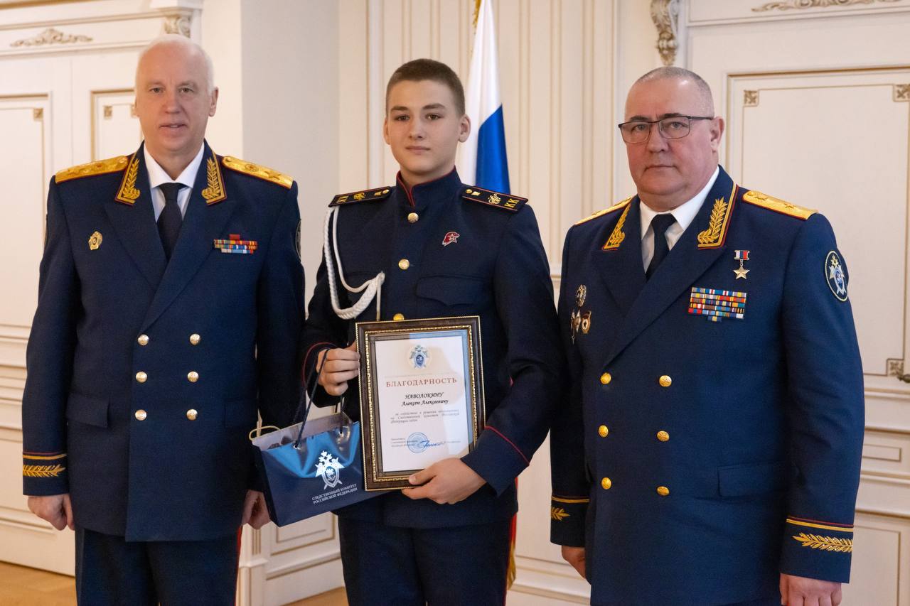 Благодарностями ведомства поощрены обучающиеся корпуса СК России им.А.Невского - Алексей Наволокин, Антон Сатвалдыев, Олег Козлов и Анна Коробейник. На их счету настоящие подвиги – эвакуация пострадавших из обрушившегося здания, спасение человека, упавшего на рельсы, а еще за их плечами активное участие в гуманитарных акциях и поддержка участников СВО.