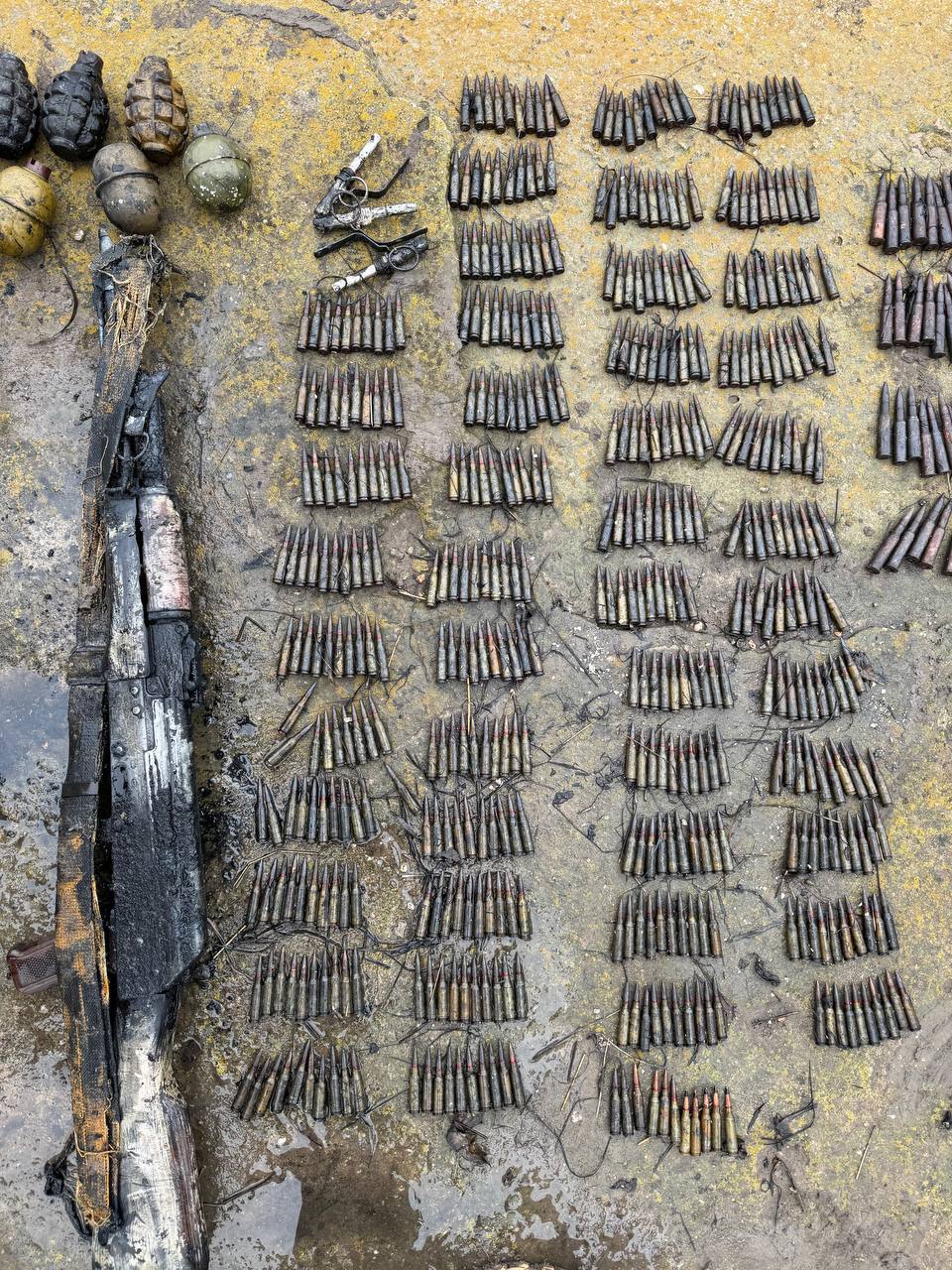 В процессе реализации оперативно розыскных мероприятий, нацеленных на выявление незаконного оборота оружия и боеприпасов, сотрудники Отдела МВД «Токмакский» совместно с региональным подразделением Росгвардии обследовали местность у села Гришино на берегу реки Бегим Чокрак.