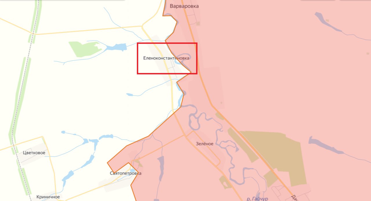 По предварительным данным, Еленоконстантиновка (она же Жовтневое) в Запорожской области, ранее взятая в оперативное окружение, полностью освобождена от украинской оккупации.