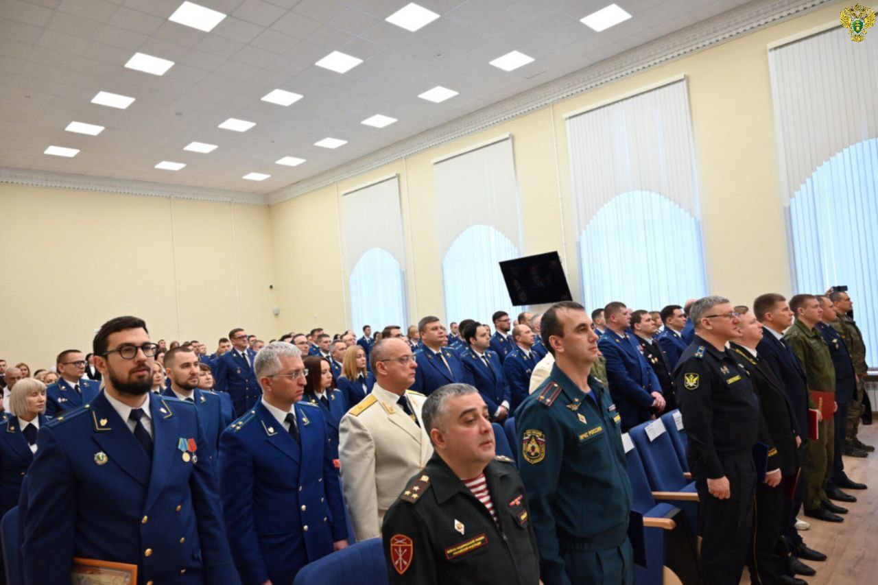 В прокуратуре Запорожской области состоялось торжественное собрание, посвященное 304-й годовщине образования российской прокуратуры. Его открыл церемониал: под звуки марша знаменная группа внесла Государственный флаг Российской Федерации, флаг Прокуратуры РФ и флаг Запорожской области. Собравшиеся почтили государственные символы исполнением Гимна Российской Федерации и гимна прокуратуры.