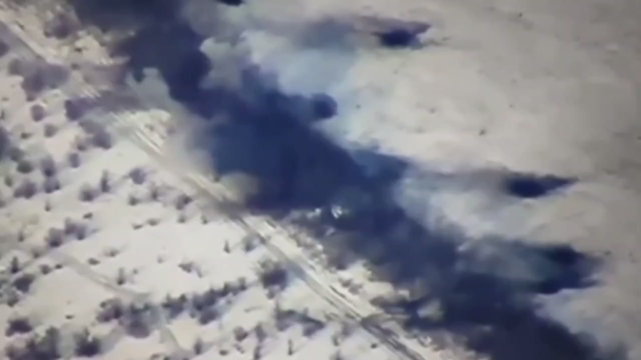Вот, украинский экипаж заводит свою машину на замаскированную позицию в реденькой лесополке. На переднем крае, насыщенном средствами воздушной разведки, танк конечно очень приметная цель. Этот не стал исключением.