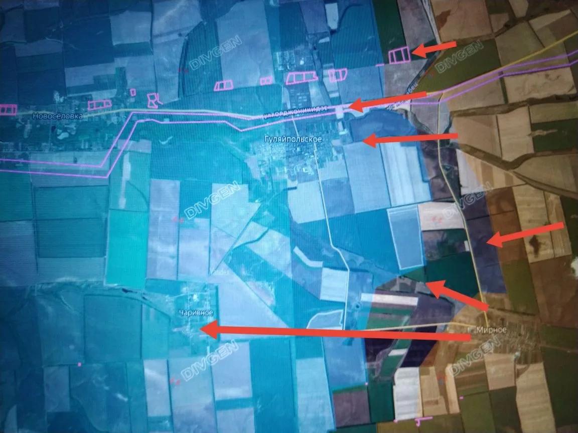 За последние 2 дня наши подразделения значительно продвинулись восточнее Комсомольского (Гуляйпольского), вышли к его окраинам, начав бои за него. При этом, несмотря на попытки ВСУ прорываться в направлении Гуляйполя мелкими группами, в ходе встречных боёв ВС РФ ликвидировали "карман" между Комсомольским и Мирным, продвинулись южнее Комсомольского со стороны Мирного и взяли село Чаривное (идёт зачистка, противник контратакует).