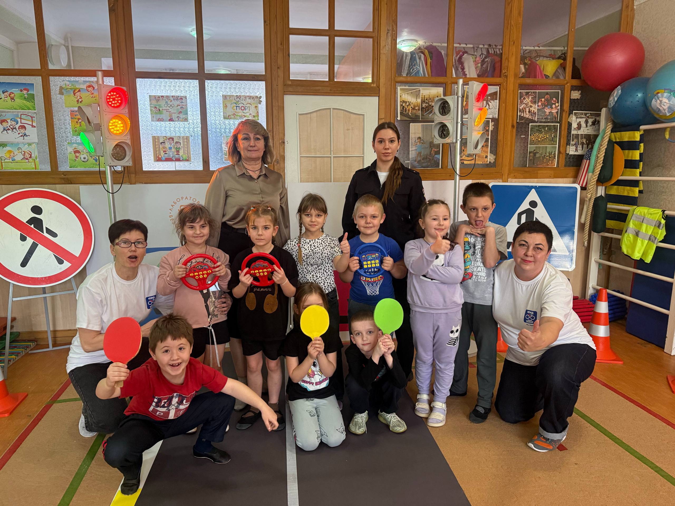 Занятия проводились с использованием мобильного комплекса «Лаборатория безопасности». В его арсенале — специальный макет дороги с электросветофорами и дорожными знаками. Это позволило организовать интерактивное обучение: дети не просто слушали правила, а сразу применяли их на практике.