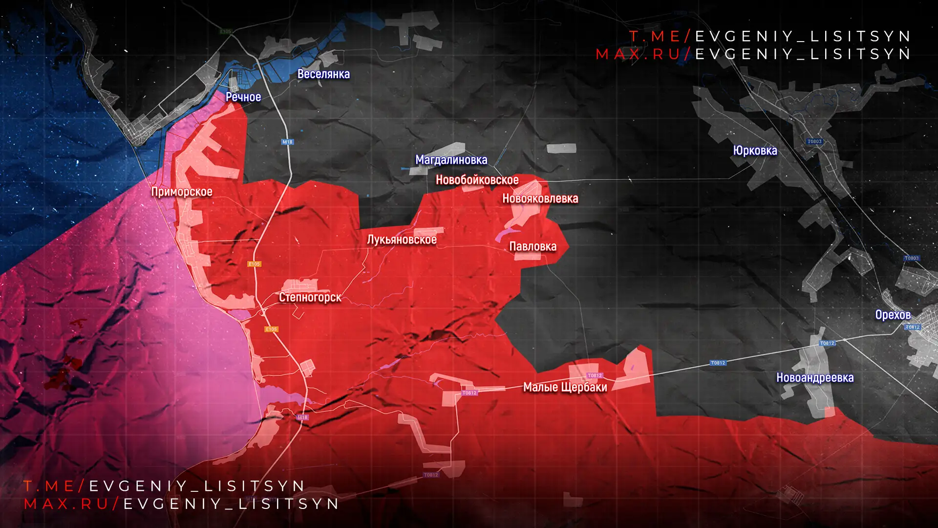 Позиционные бои у Приморского и Степногорска. Бои на подступах к Чаривному и Гуляйпольскому.